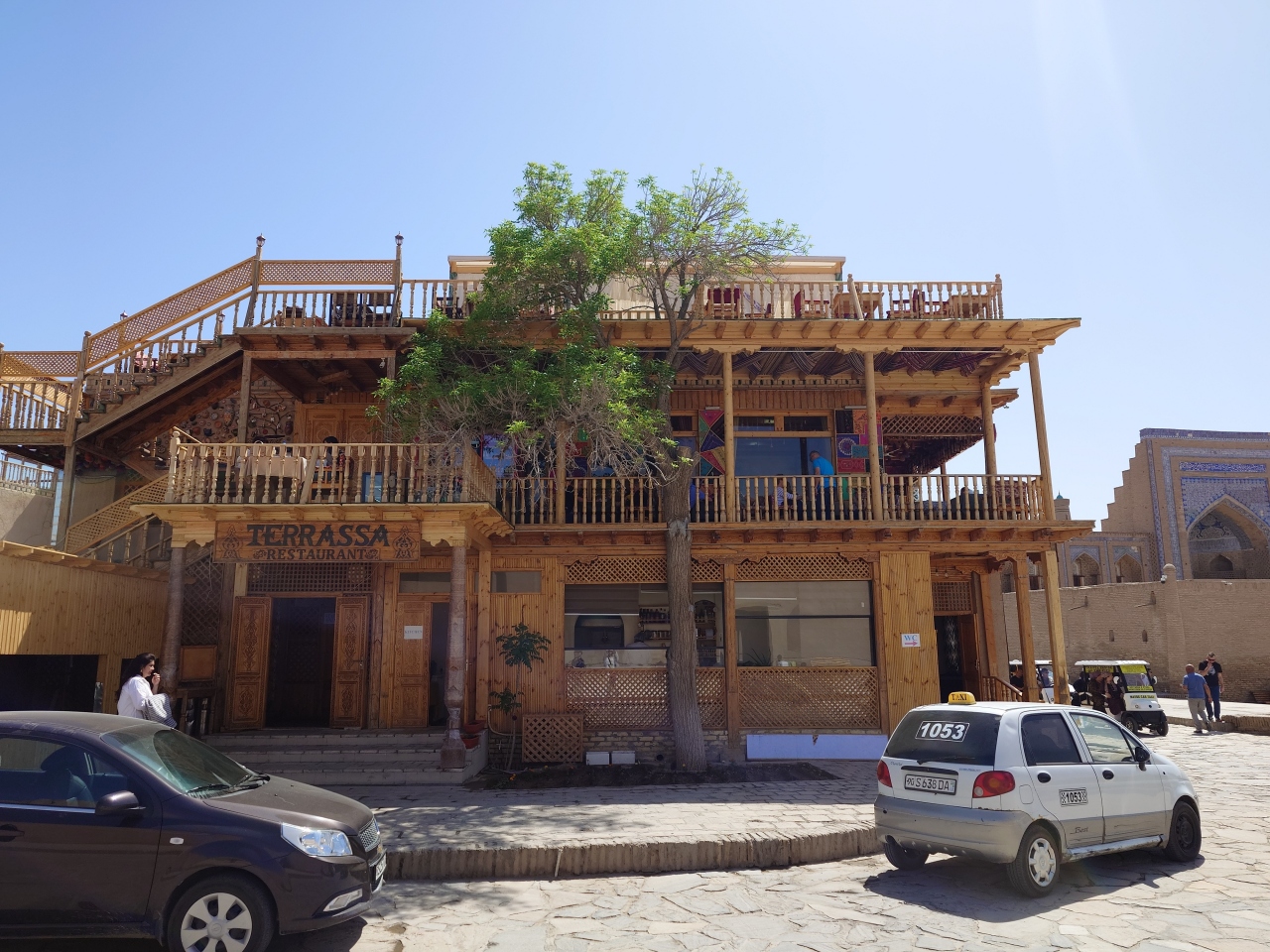 このレストランの2階席からクフナアルクの前の広場を見下ろしながら食事を取ることができます。団体客が入ってたりするので早めに行くのが良さそうです。ウズベキスタン料理のプロフやラグマンを食べましたが、どれも美味しかったです。また、カードで支払いができました。