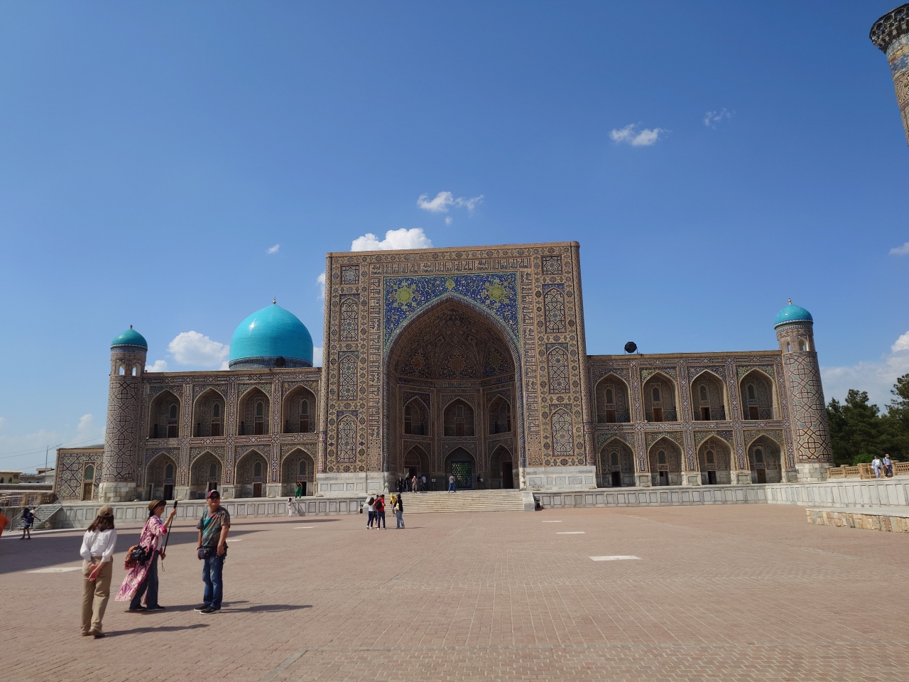 レギスタン広場の一番奥にあるメドレセです。ティラカリとは金箔されたという意味だそうで、内部の金キラ具合は3つのメドレセの中では一番です。ゴールドとブルーの組合せが美しく、とにかくゴージャス。奥の方にはお土産屋さんがありました。