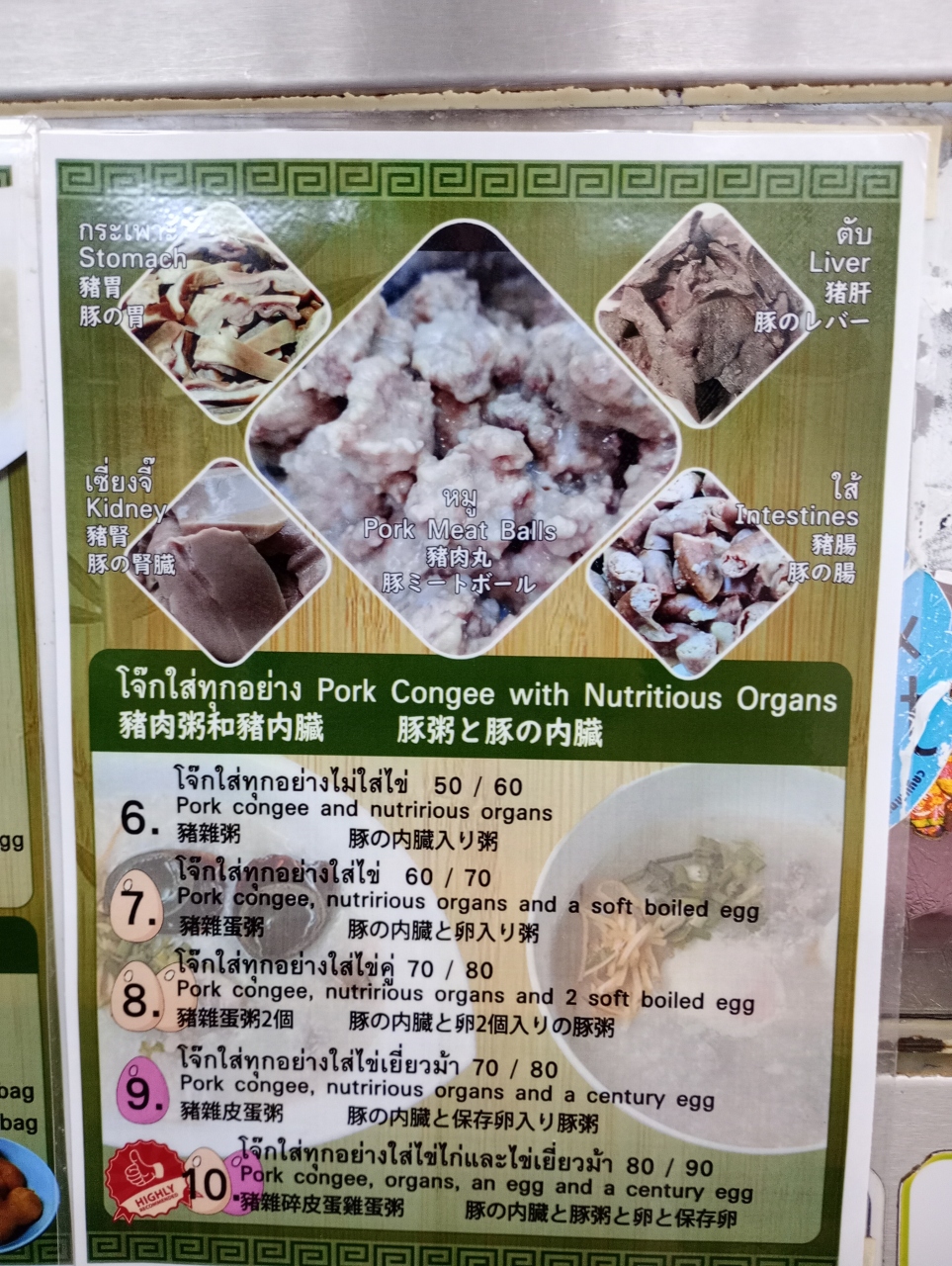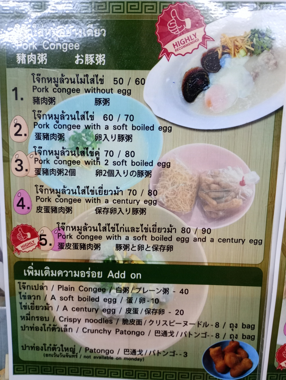 - 温泉卵とピータンの両方入りの大盛が90バーツ≒360円