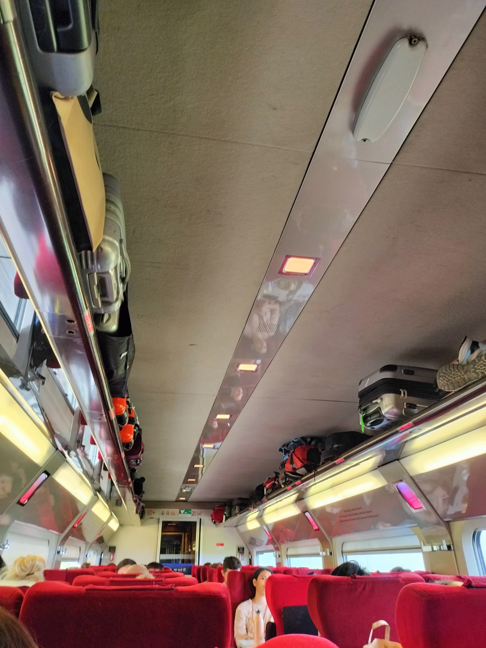 パリからアムステルダムまで乗車しました。パリ北駅では検査があるような口コミを見ましたが、そういうものは一切なく、ユーロ圏内の移動なので普通に新幹線に乗るのと同じ感じでした。トランクが盗まれるという記事を見かけたので、ワイヤーロックを持参しました。荷物置き場はありますが、それほど広くないので、大型トランク以外はみなさん座席の上にあげていました。