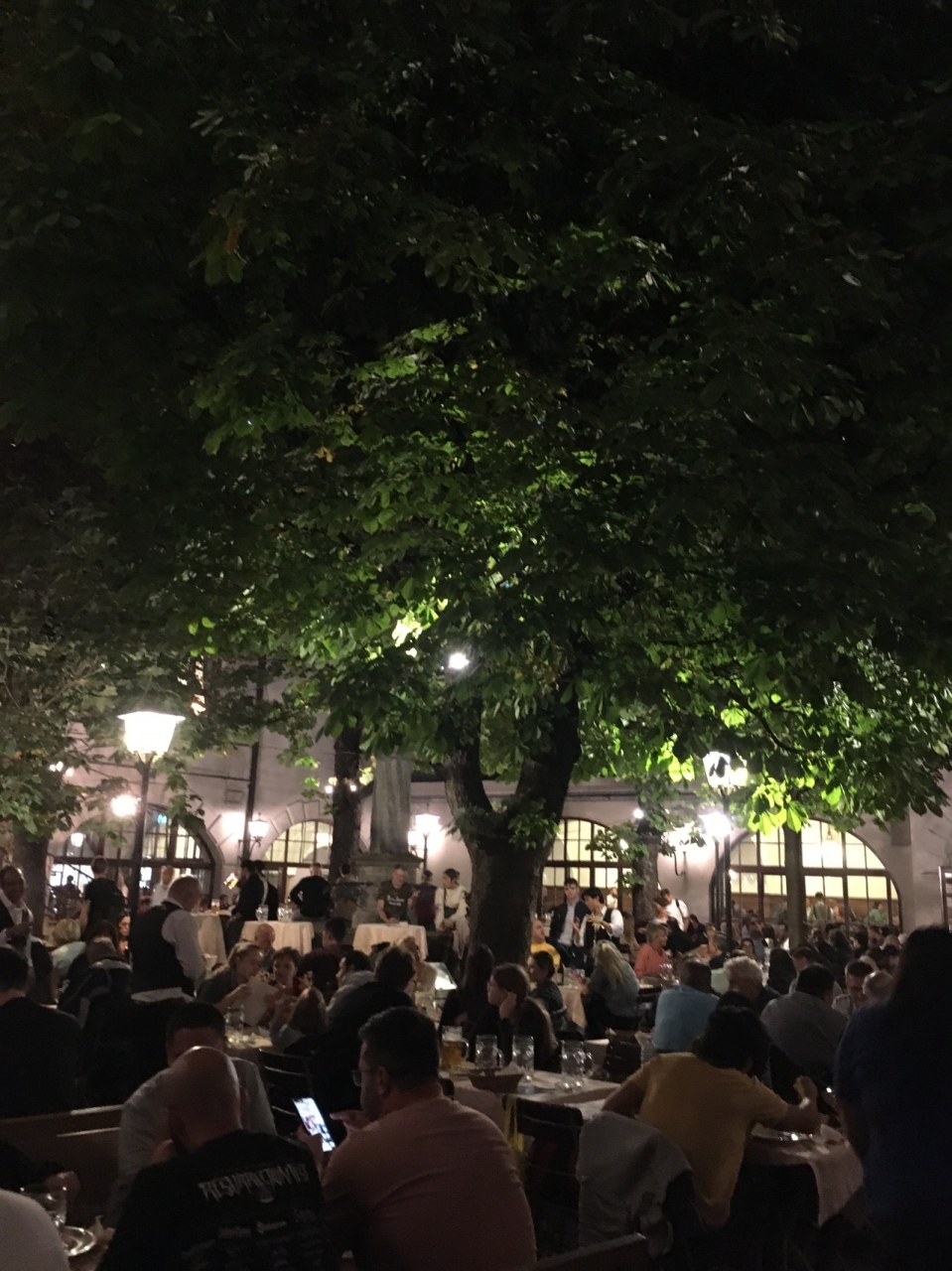 遅くまで空いているのを事前に確認していたのでオペラを見てから9時過ぎに行きました。外は人気で席がなく中に座りましたが食べたかった名物のホワイトソーセージ売り切れでした。雰囲気はいいですが話し声が聞こえないので ゆっくりしたい方には向かない。