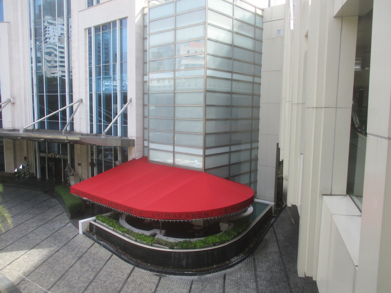 ル マカロンでカフェラテを注文しました。メニュー表を良く見ずラテだけを注文しました。ホテル併設のカフェなので、値段が少し高いように感じましたが、小さなカヌレとクッキーが付いてきました。さらに、きれいなラテアートが施されてきました。