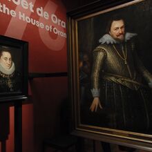 運河に面した門をくぐって建物内の教会部分で受付を済ませ館内に入ります。館内にはデルフト繁栄の歴史を伝えるたくさんの品々が展示され、オラニエ家の人々の肖像画をはじめ当時の人々の集団肖像画や風景画、静物画などの絵画、タペストリー・陶磁器・銀器などの豊富なコレクションがズラリと並んでいます。