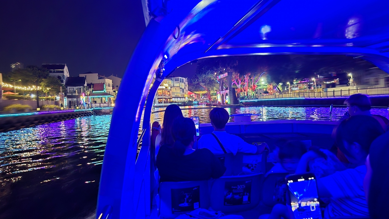 マラッカ川がカラフルにライトアップされ最初はワクワクしましたが、あまりに単調ですぐに飽きてきました。