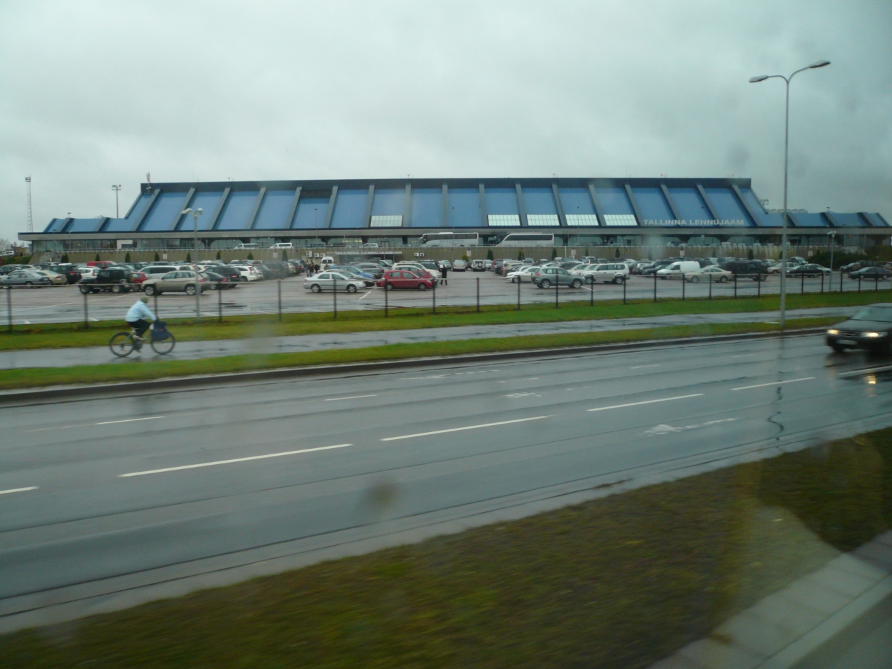 11:40チェックアウト。12:40バスでタリン空港に向かう。サッカースタディアムのような紺色の建物が見えてくる。