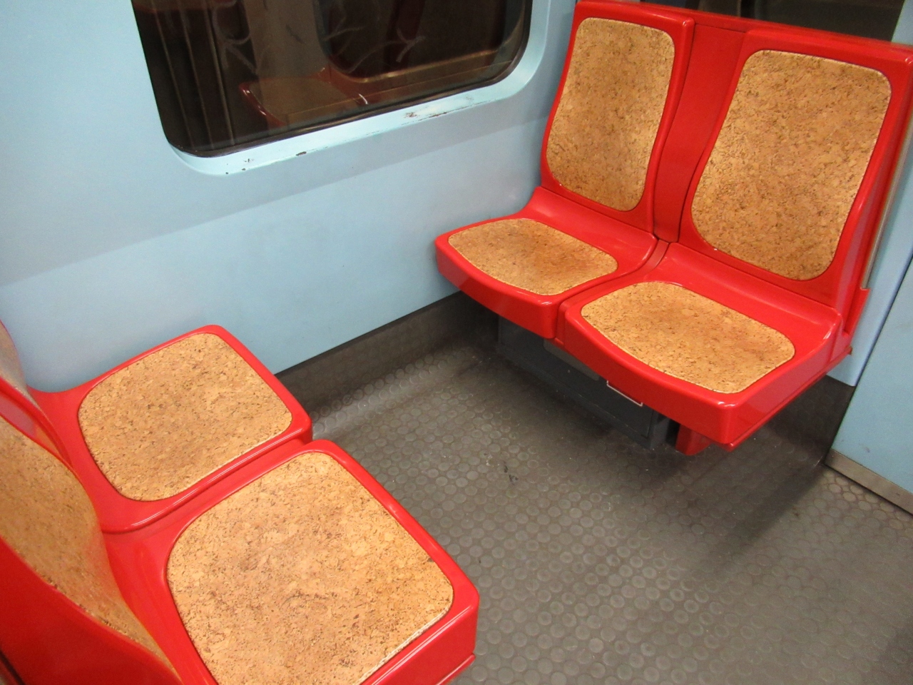リスボンで乗車した赤線では、座席の座る面と背もたれがコルクでした。
