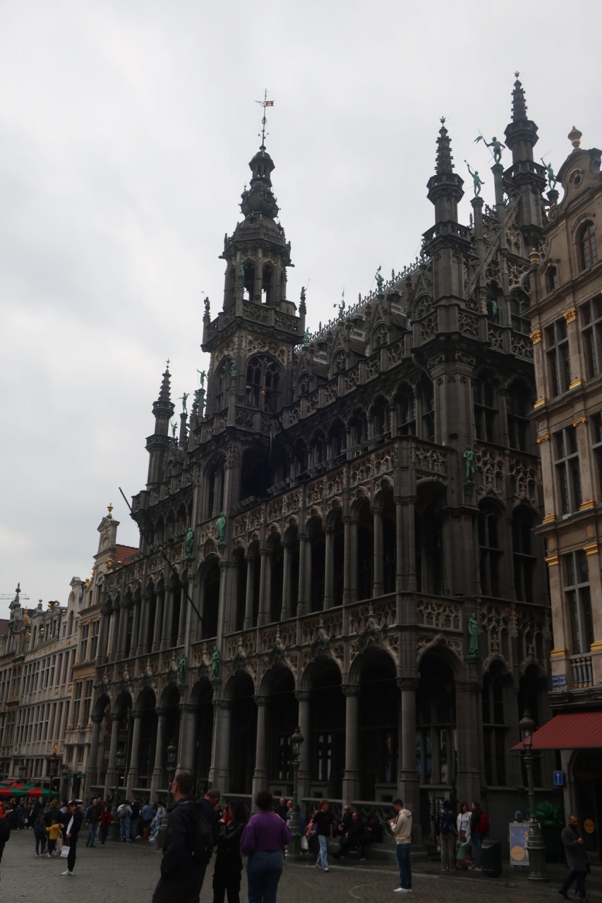 白っぽい市庁舎に比べ、少し黒っぽい印象の建物、空を突き刺す様なゴシックは市庁舎とのバランスもよく、グランプラスの美しい印象を引き立てる建物の一つだと思います。