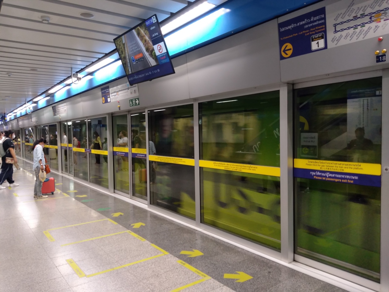 ドンムアン空港からレッドラインでバーンスー駅に到着後、地下鉄に乗り換えで利用した。夕方の時間帯だったので混雑はしていたが、ホームはフルスクリーン式のホームドアを採用していたので安心感はかなり高かった。ちなみにチケット(トークン)を購入しようとしたが自動券売機がお札やコインを受け入れず(それも2台)、仕方が無いので窓口を利用したが行列が出来ていて時間がかかってしまった。