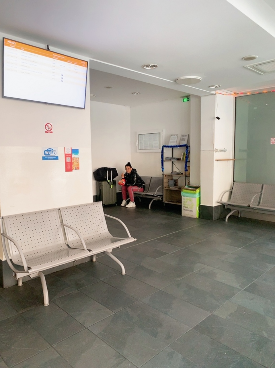 バスターミナルはかなりシンプルな作りで、有料のトイレがあるくらいでお店はなかったです(シーズンオフで営業してなかっただけなのかも…)。