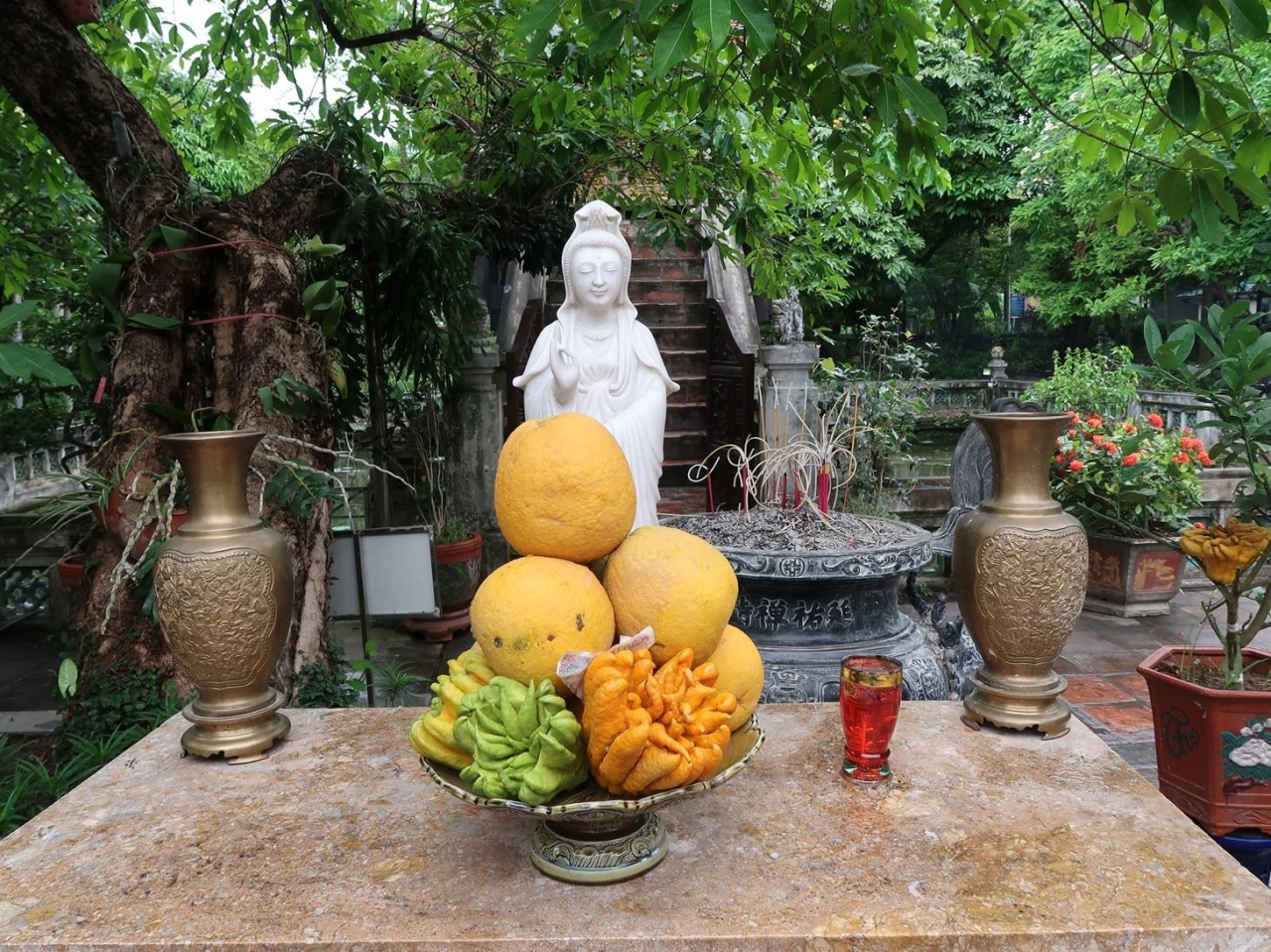 花や果物の捧げ物も絶えないようでした。