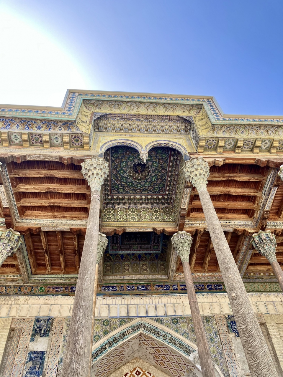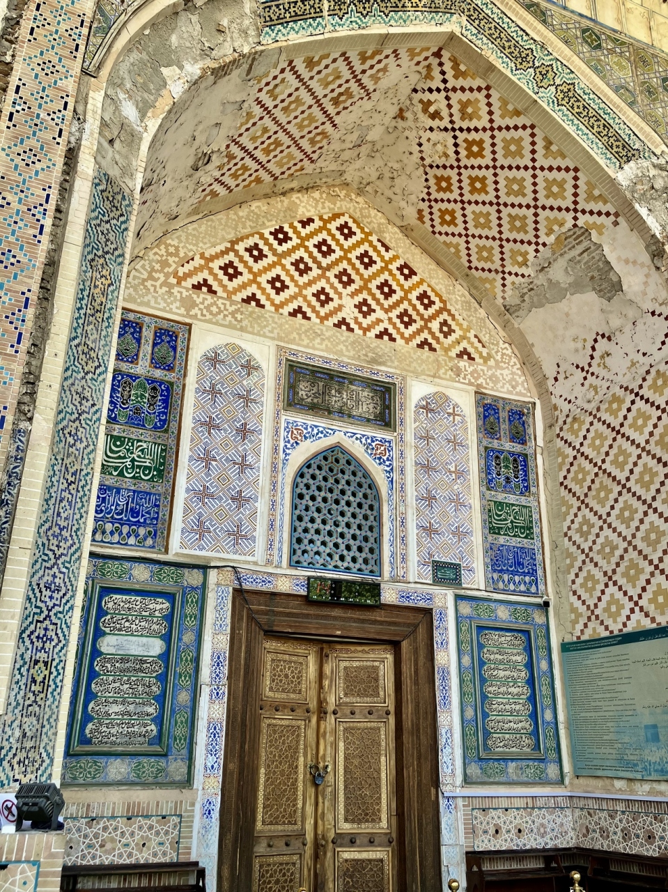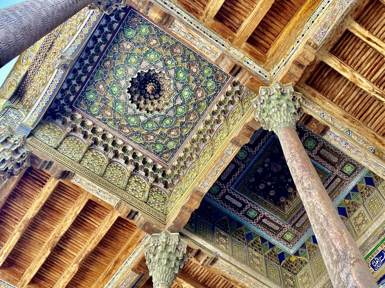 他のモスクやメドレセと違って、日本でいう軒下にクルミの木の柱が何本も並んでいて、パッチワークみたいなタイルの装飾があって、その斬新さからか、見たときには大感動しました。