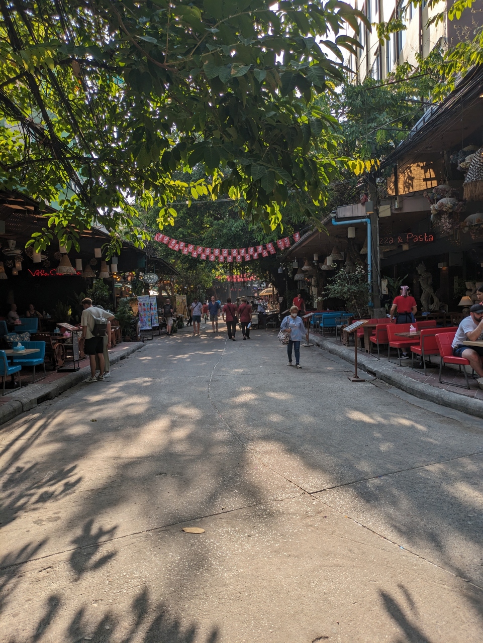 カオサンほど外国人で賑わってはいませんが、明るいうちから結構お店が開いていて