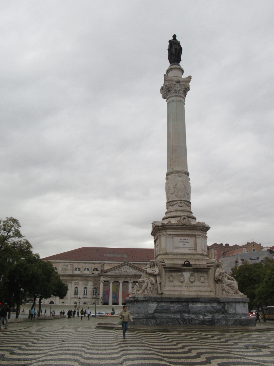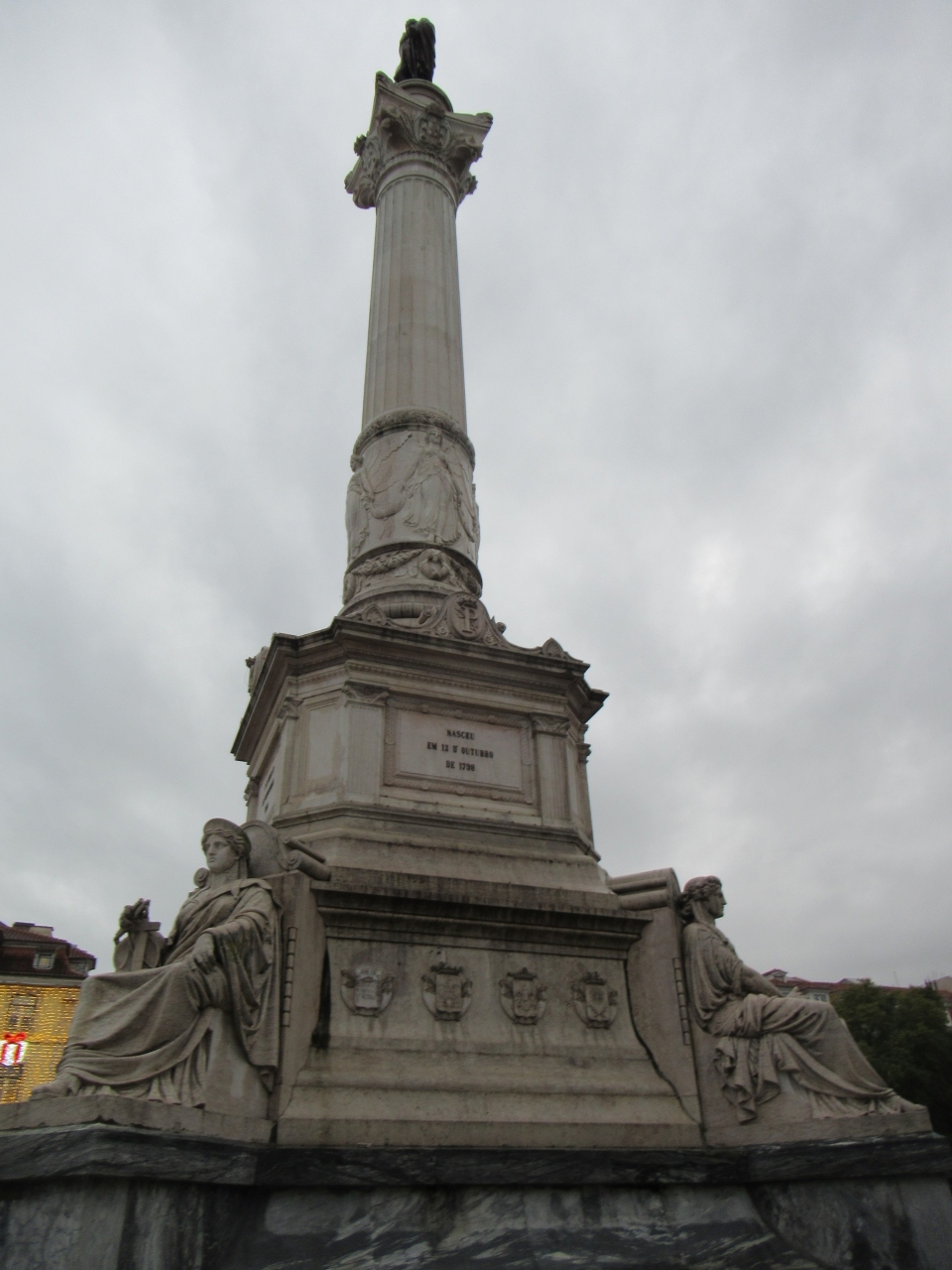 ロシオ広場の中央部の大きな柱の上に像が立っているので、下から見上げる形になります。