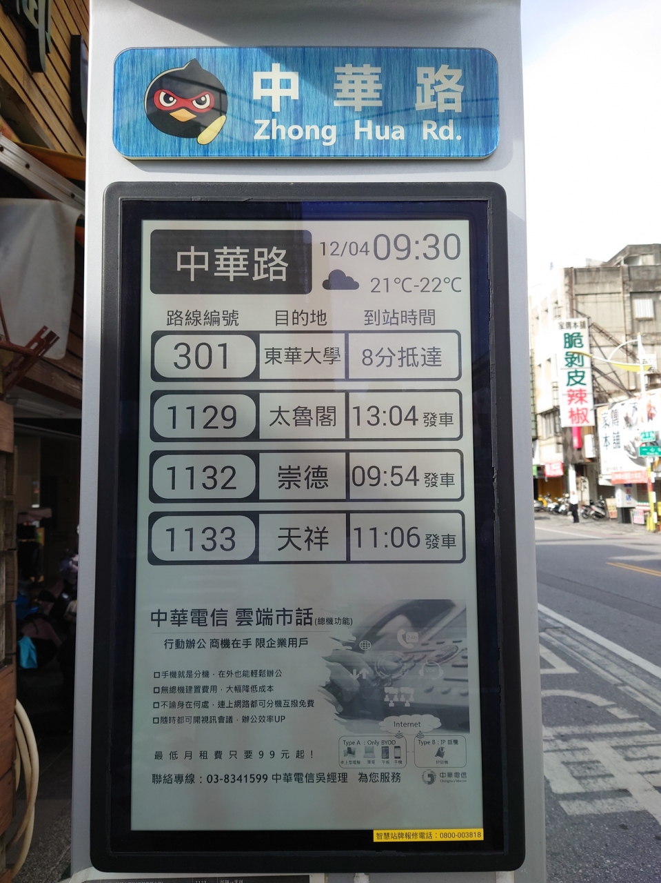 花蓮駅から観光中心部までは少し距離があります。タクシーという手もありますが、バスが思っていた以上にありました。イージーカードも使えるので、小銭の心配もありません。コンテナ・スターバックスも1本で行けるので便利です。