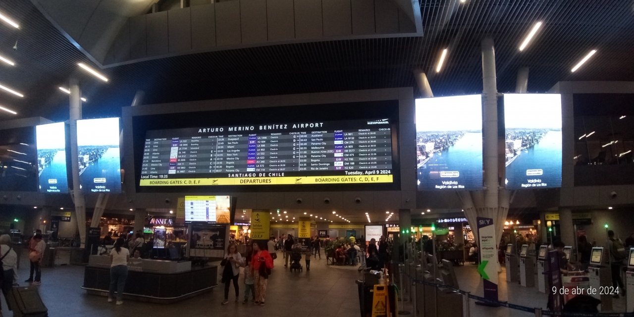ラテンアメリカの経済優等生であるチリらしい、モダンな中規模の空港です。日中の晴天ならば、西には、アンデス山脈が見られて、絶対見逃せない景色です。特に夕方は、沈みゆく夕陽にキラキラと照らされるアンデス山脈は圧巻です。