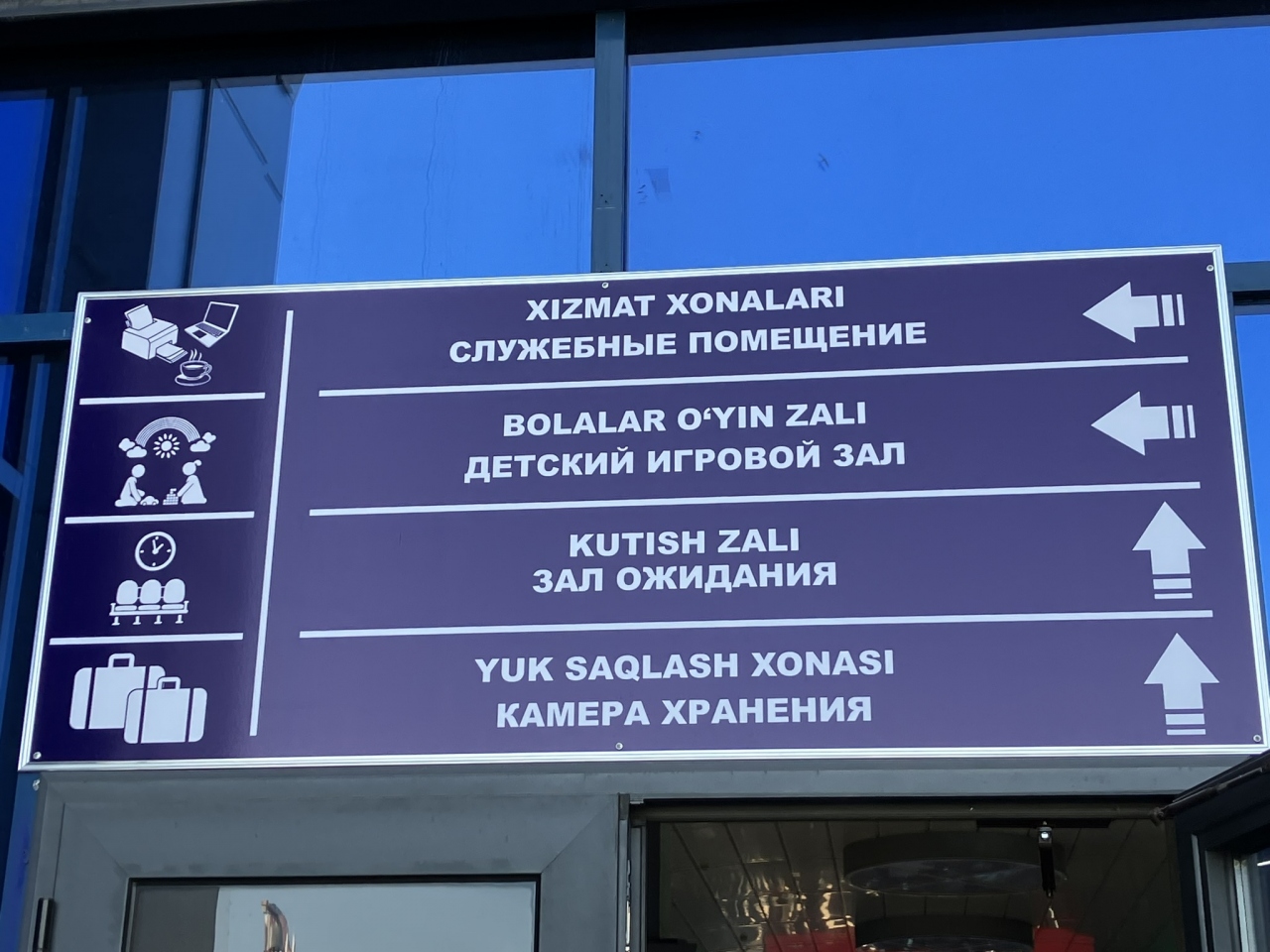 駅に到着したら人の流れに沿って行くと外に出てしまうので、途中に立っている係員に荷物を預けたい旨を説明すると、ではどうぞと駅舎に入れてくれます。地下一階に預ける場所があります。どんな大きさでも一つにつき一日4000スムです。