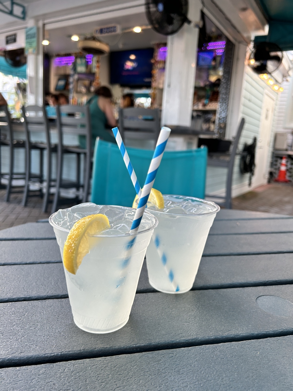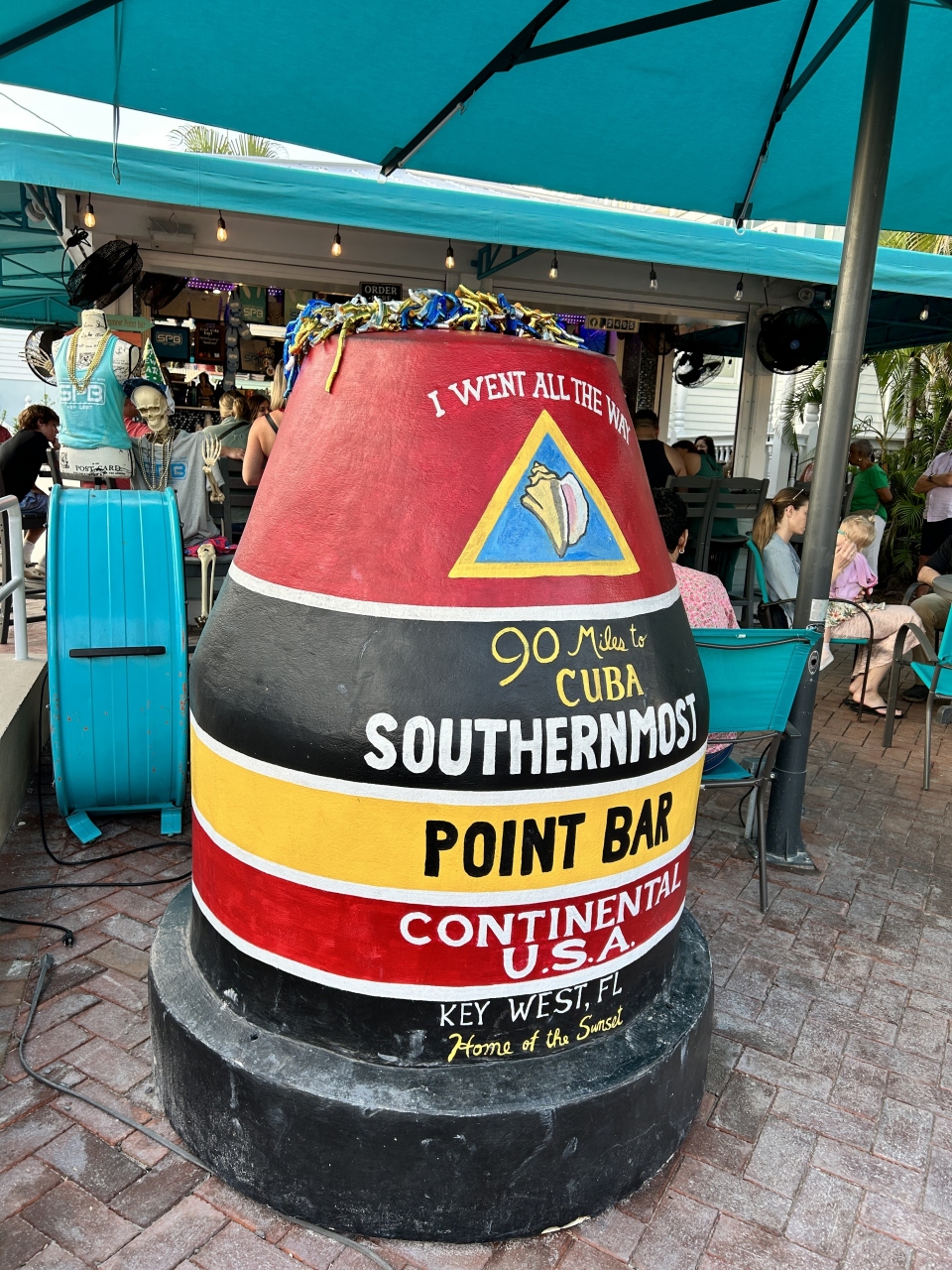 人気の観光地であるアメリカ最南端「サザンモスト・ポイント」のすぐ近くにある「サザンモスト・ポイント・ゲストハウス」に付属するバーです。このバーの横の路上パーキング(コイン式の有料P)にクルマを置いたこともあり、トイレも兼ねて入店。小さいカップ一杯6ドルのレモネードをオーダー(トイレ代と思って無理やり納得)。バーのテラスには「サザンモスト・ポイント」のダミーがありました。