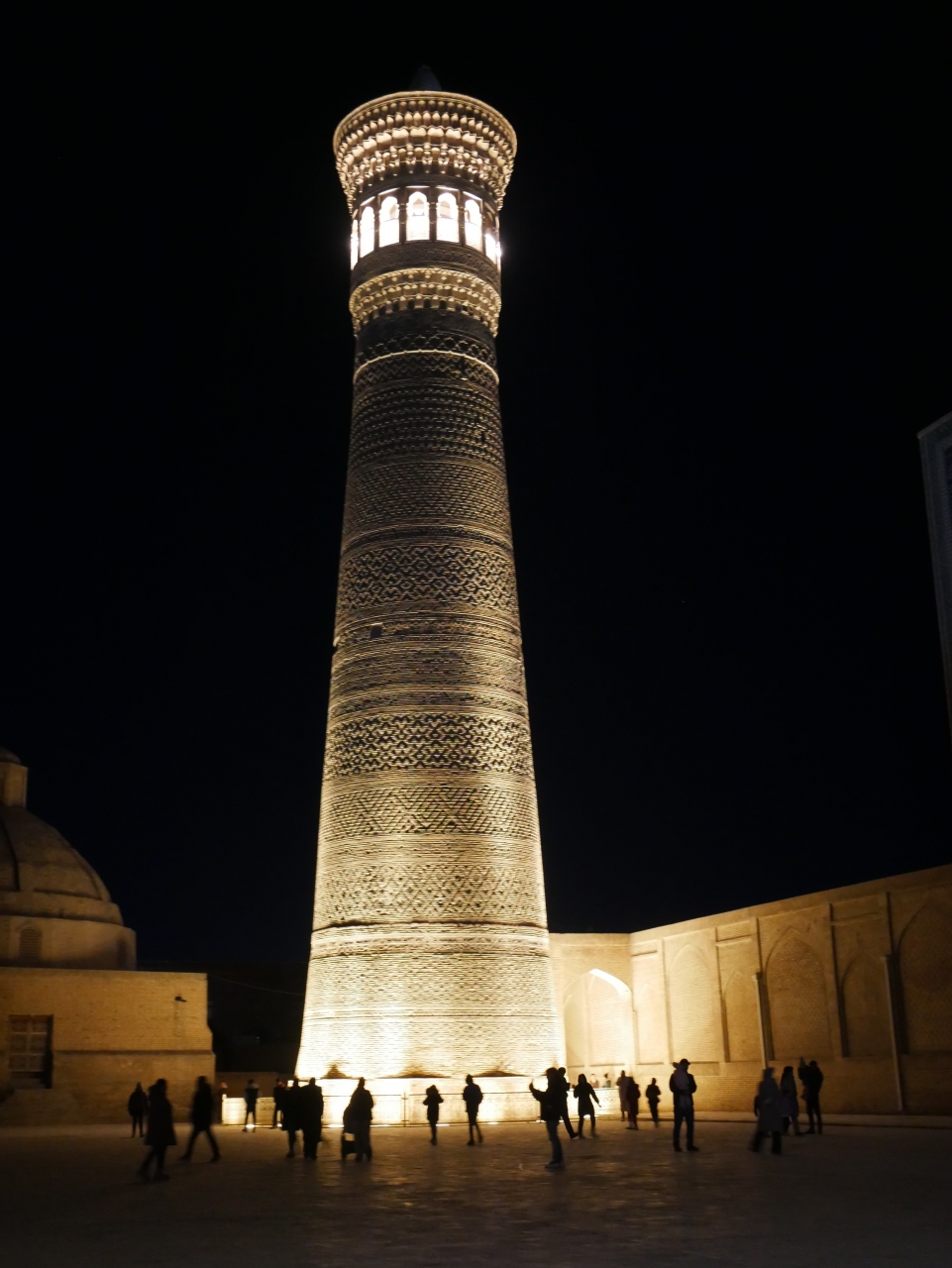 すぐ横にカラーン・ミナレット、向かいにはミル・アラブ・メドレセとブハラを代表する建物のあるエリアにあり、その高さはモスクやメドレセよりさらに高く、近くで見るとなかなかの迫力でした。