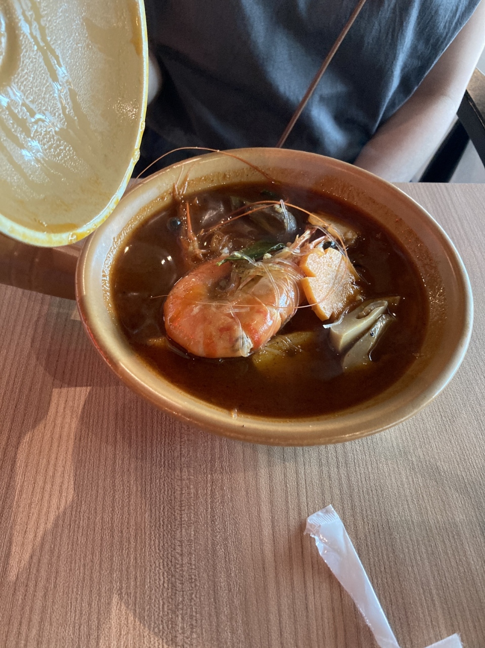 1人33ドルまで注文オッケーとのことだったので、レモングラスを使ったモクテルと春雨や海鮮がたっぷり入ったトムヤンクンスープを注文!