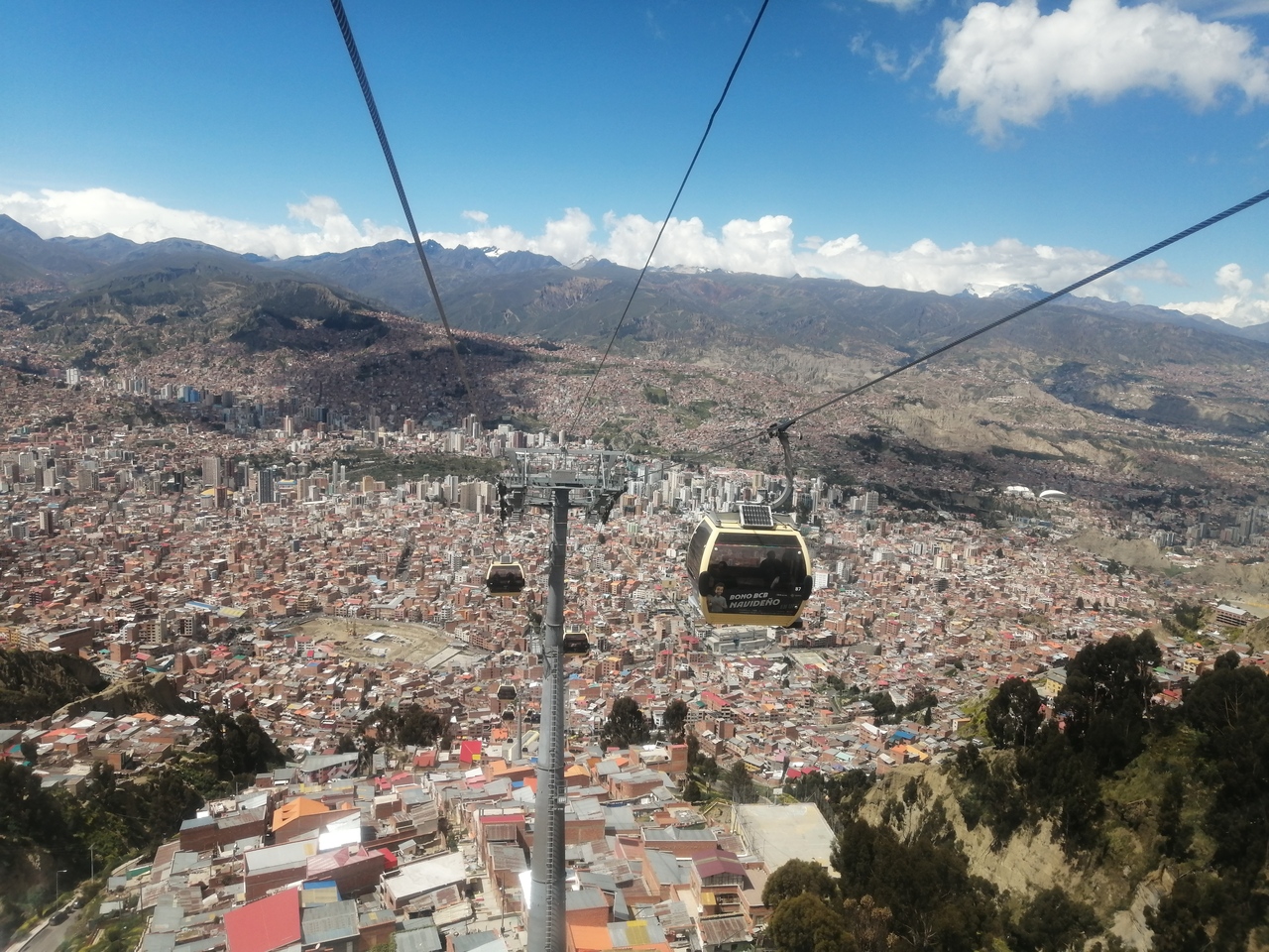 ラパスのロープウェイ、ミテレフェリコは乗車券も安く、すり鉢状の街が見下ろせる。夜景鑑賞は特に素晴らしく、おすすめ。テレフェリコの乗り場に時々バーガーショップやサルテーニャの食べられるカフェレストランもあって便利でした。