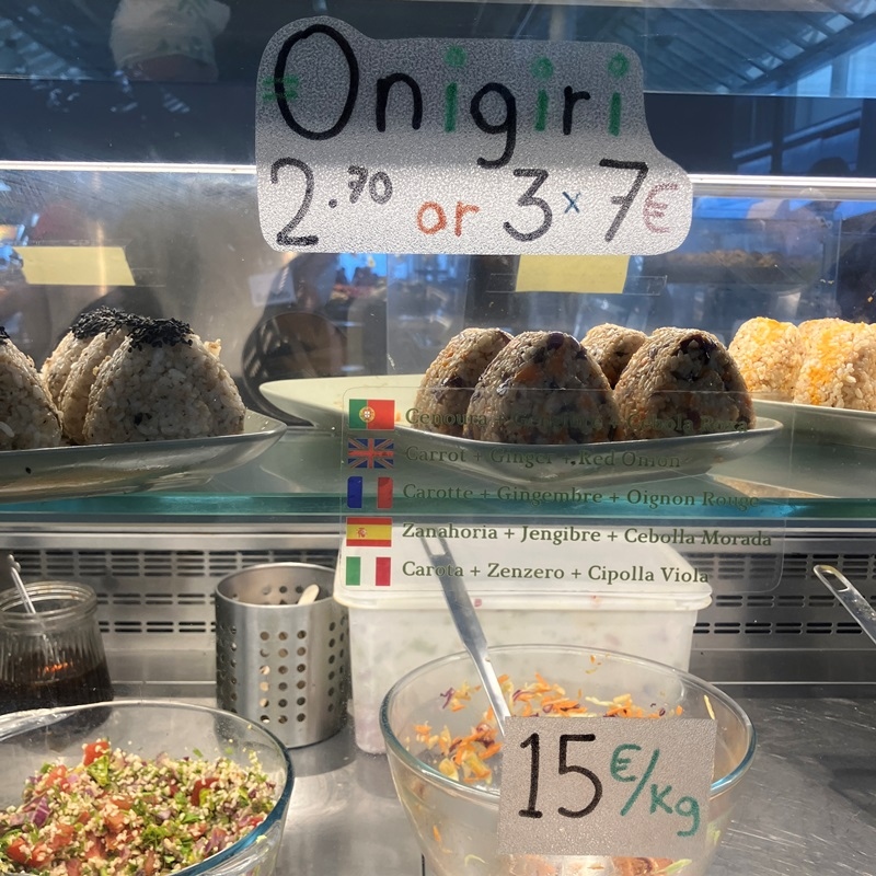近年、改装されたそうで、明るくきれいな活気あるマーケットです。野菜、花、果物、肉屋、チーズ、ワイン、魚介類、土産などの店があります。おにぎりを売っている店もありました。食べ歩きしながら周れるようになっており、グラスワインやおつまみ(チーズ、サラミ盛り合わせなど)も売っています。