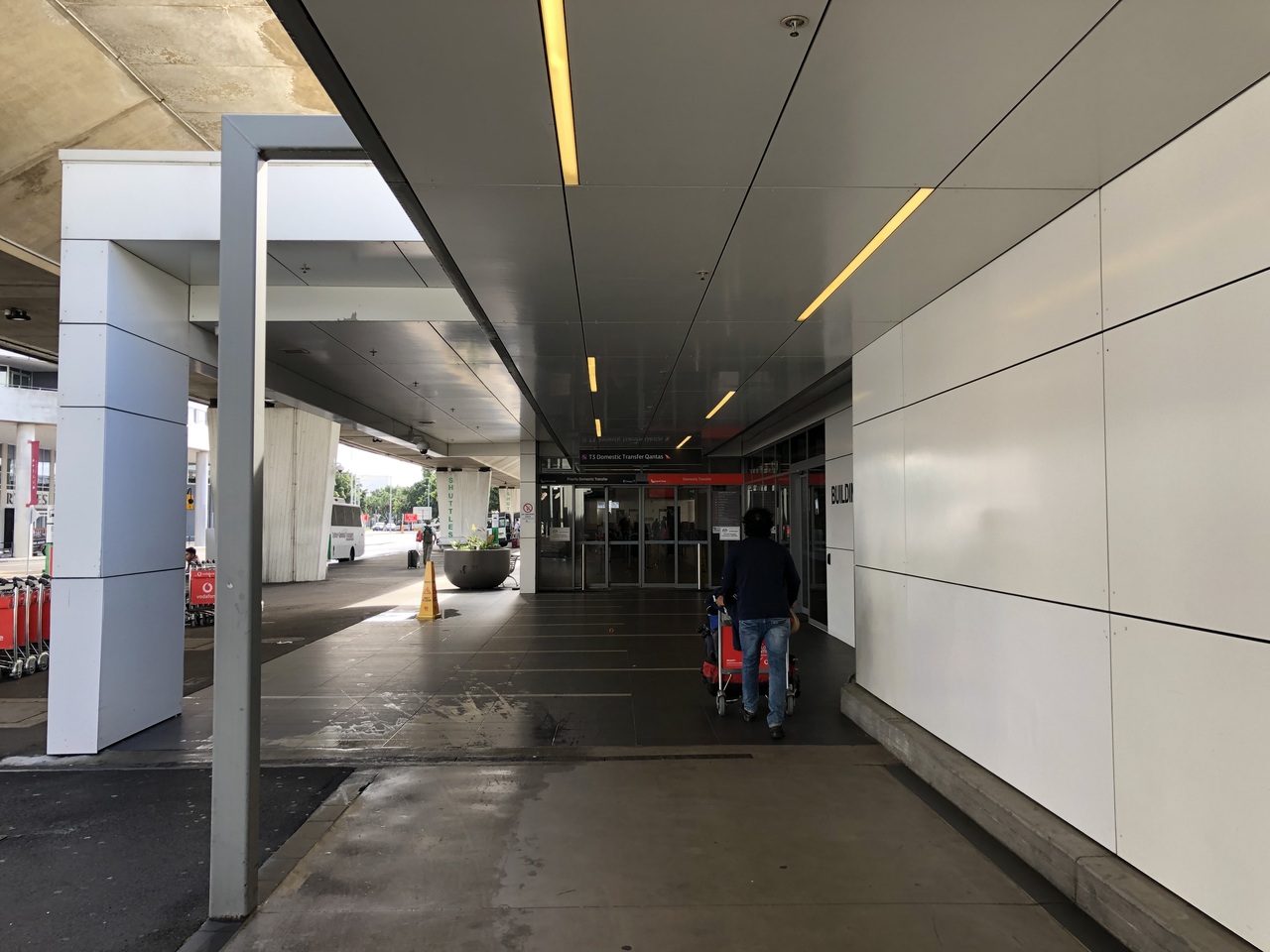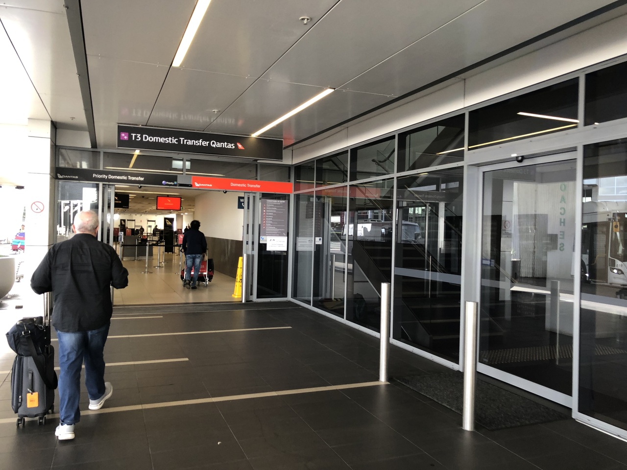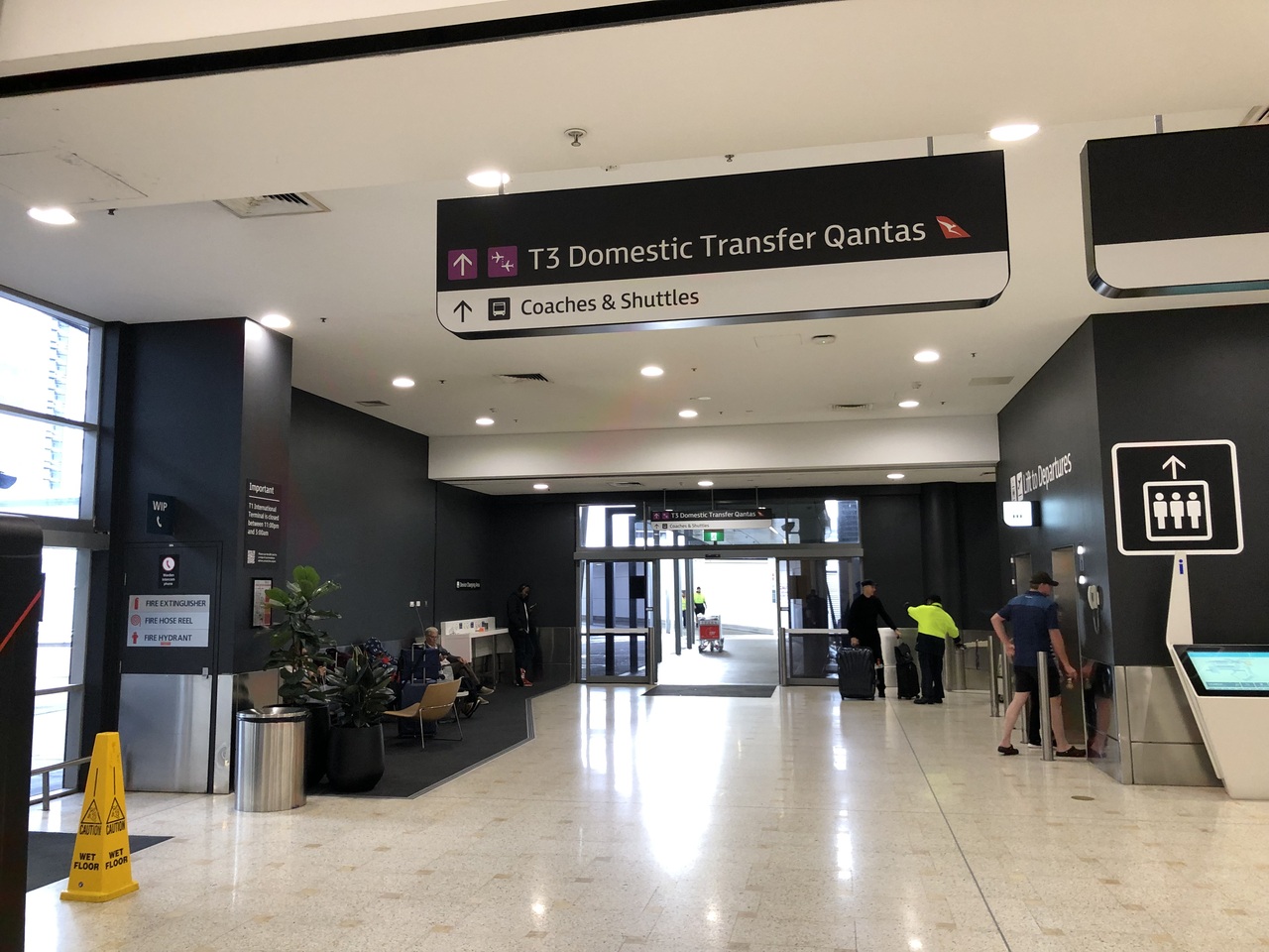 ただしQF国内線を予約している方は国際線ターミナルのCIQを抜けて到着口を向かって左側にどんどん進んで行ってマクドナルドの先空港鉄道駅に下りるエレベーター脇から車寄せに出るとQF国内線乗り継ぎ用カウンターが有る小さなターミナルが有るので此処でチェックインを済ませれば荷物を持ってのターミナル間移動をしなくて済みます。