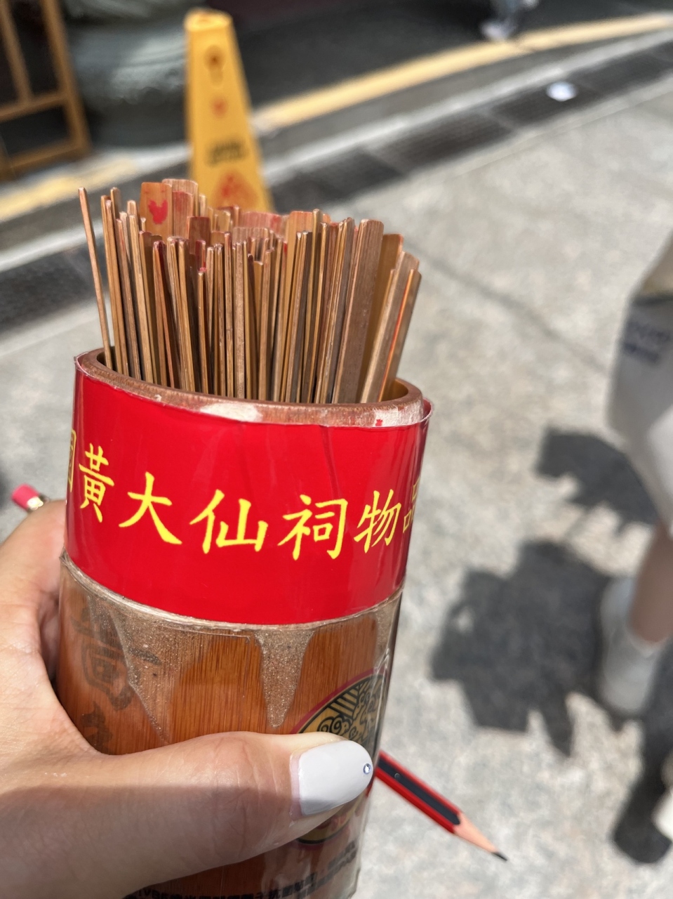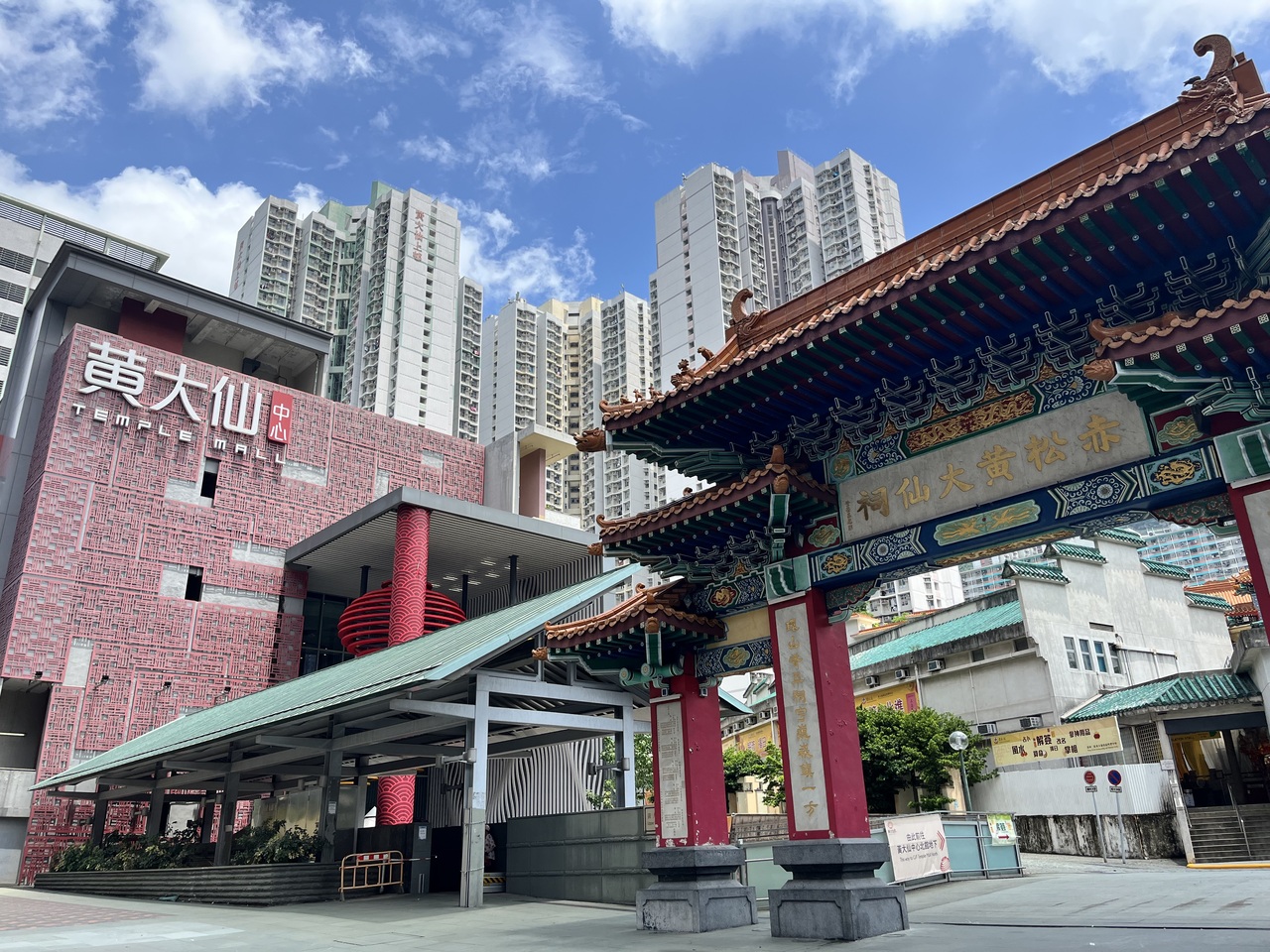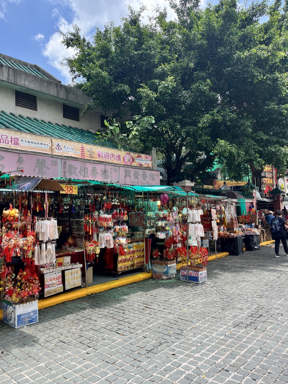 黄大仙入口まで歩いていると、線香とお供え物の売店が並んでいます。