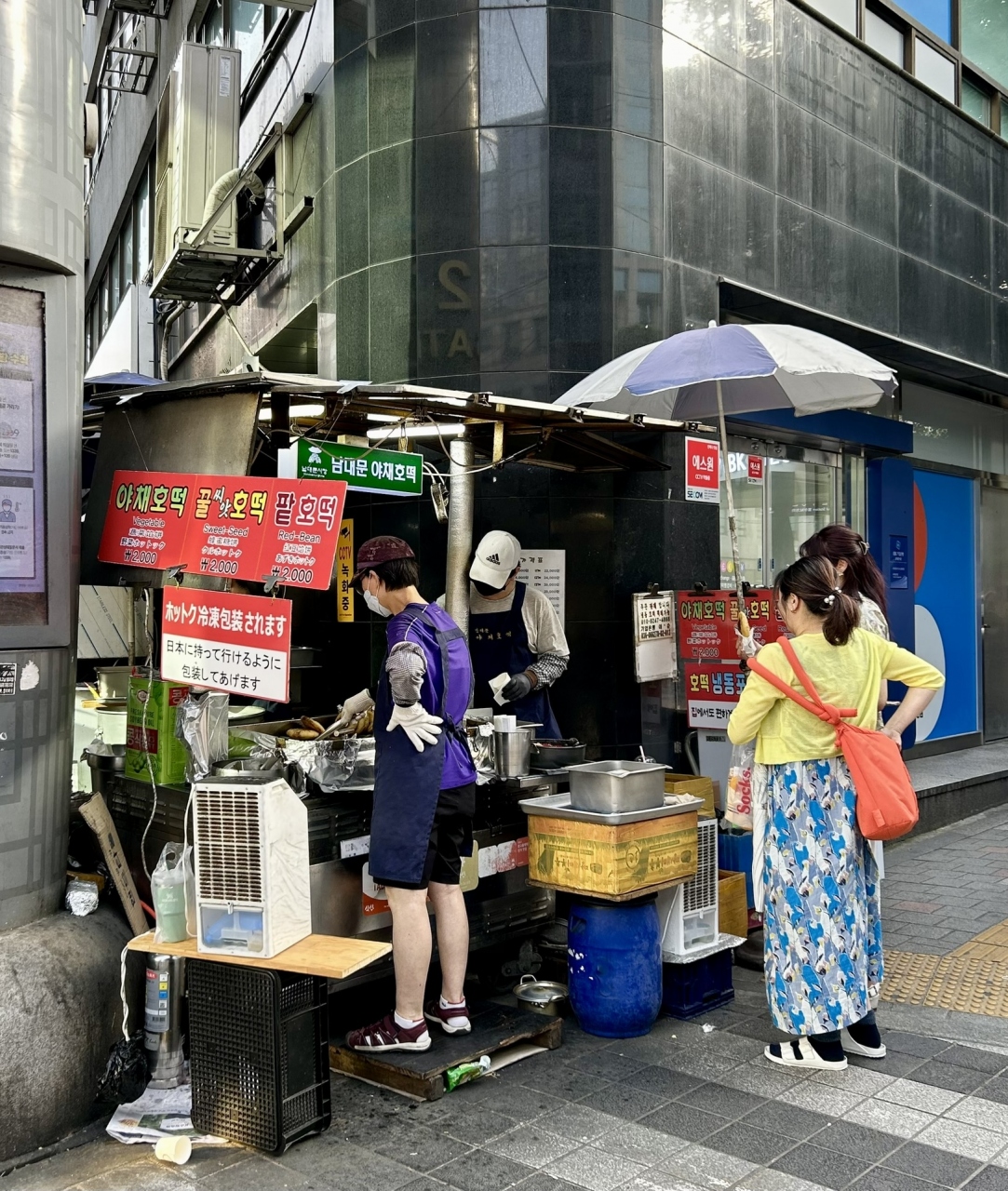 南大門地下道2番出口のところにあるホットク屋台。常時20人は並んでいる模様。