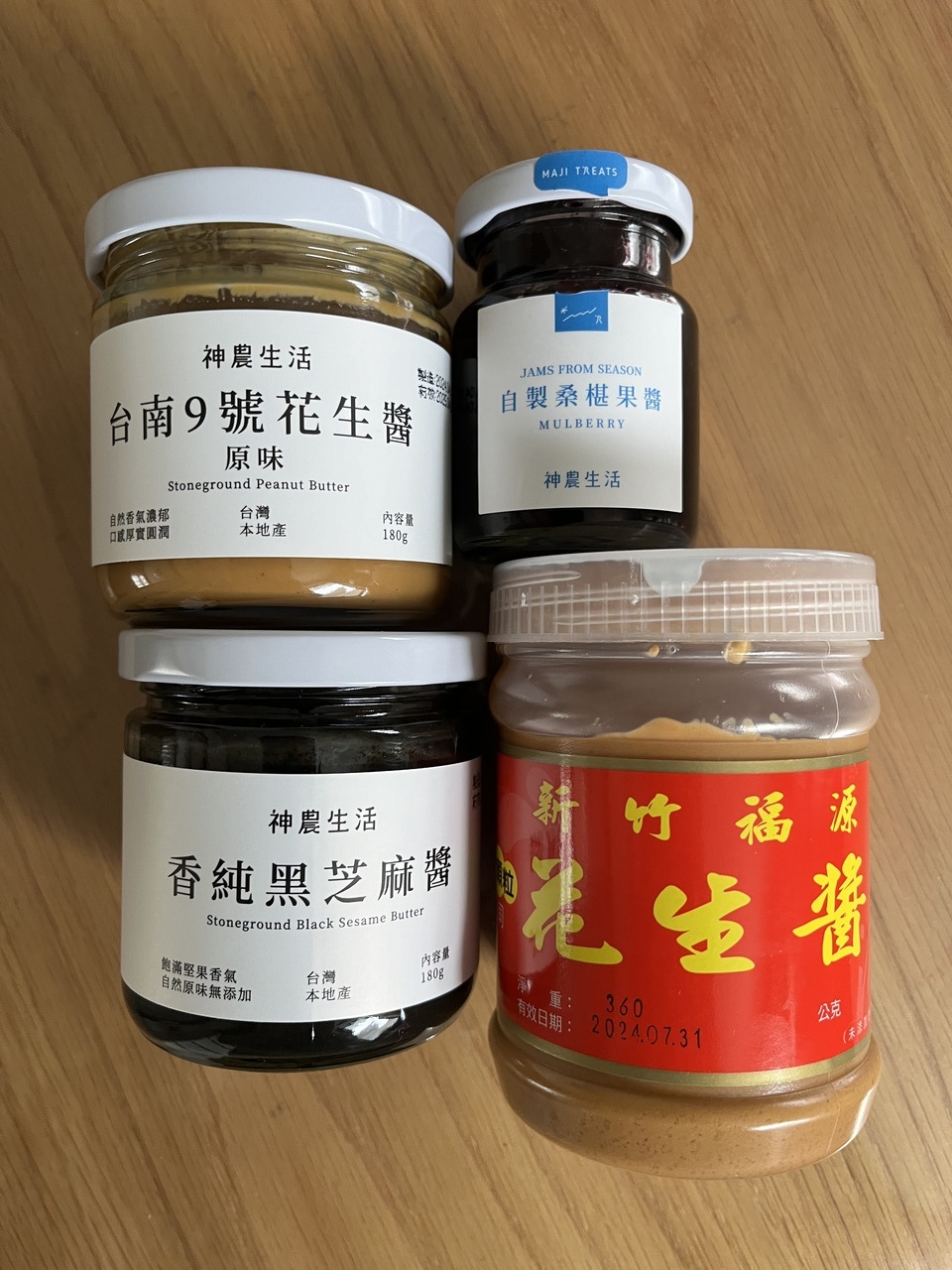 MRT圓山駅近くの台北花博跡地にある神農市場と、中山駅近くの誠品生活南西館にある神農生活で、楽しくお買い物しました。神農市場は店舗面積が広く、神農生活はコンパクトに、ショッピングすることが出来ます。台湾国内から集められた、美味しい自然派食品や人気のある雑貨などが売られており、心ゆくまで台湾生活品に触れることができます。今回は人気の美味しい食材を目当てに、ピーナッツや黒ゴマのクリーム、マルベリーのジャム、シナチク、澎湖の人気土産菓子の花生酥などを買ってきました。台湾旅行から帰ってきても、毎日のように、楽しみながら、台湾の食材の美味しさに触れ続けています。次回の台湾旅行でもリピート予定です。
