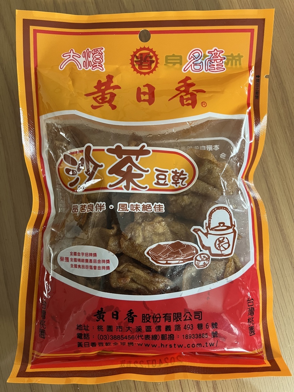 黄日香の豆乾を、台北駅前の新光三越地下2階で見つけたので、思わず購入してしまいました。台北市内では、なかなかお目にかからない一品なのですが、あるとこにはあるのですね。豆干とは豆腐を乾燥させた料理によく使う食材で、それを味付けしたおつまみが、この黄日香の豆乾となります。私は沙茶の味、友人は滷味の味を、それぞれ購入しました。どちらも美味しかったのですが、台湾風味も強いので、苦手な人はダメかもしれませんね。私は次回も購入予定です。ちなみに、黄日香は桃園市の大渓老街にある有名な老舗だそうです。また、有名な福源の花生醬も売っており、こちらも合わせて購入しました。有名なサンドイッチなどのお店で良く使われている、美味しいピーナツバターです(神農市場・生活や永康街にあるお店でも売ってますよ)。
