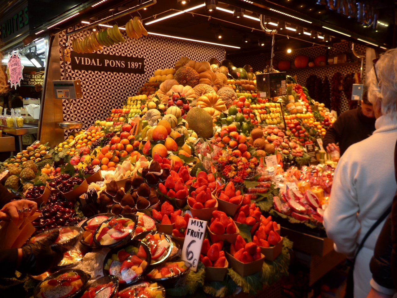 バルセロナ・ゴシック地区観光の二日目にサン・ジュセップ・ブケリア大市場を訪れました。場所はカタルーニャ広場からコロンブスの塔がある海を結ぶランブラス通りの中間あたりMRTの駅だとリセウ駅からは直ぐに位置します。