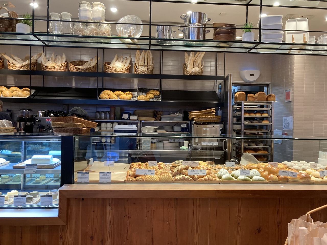またMUJ I内のパン屋さんは種類も豊富。食事スペースあり。