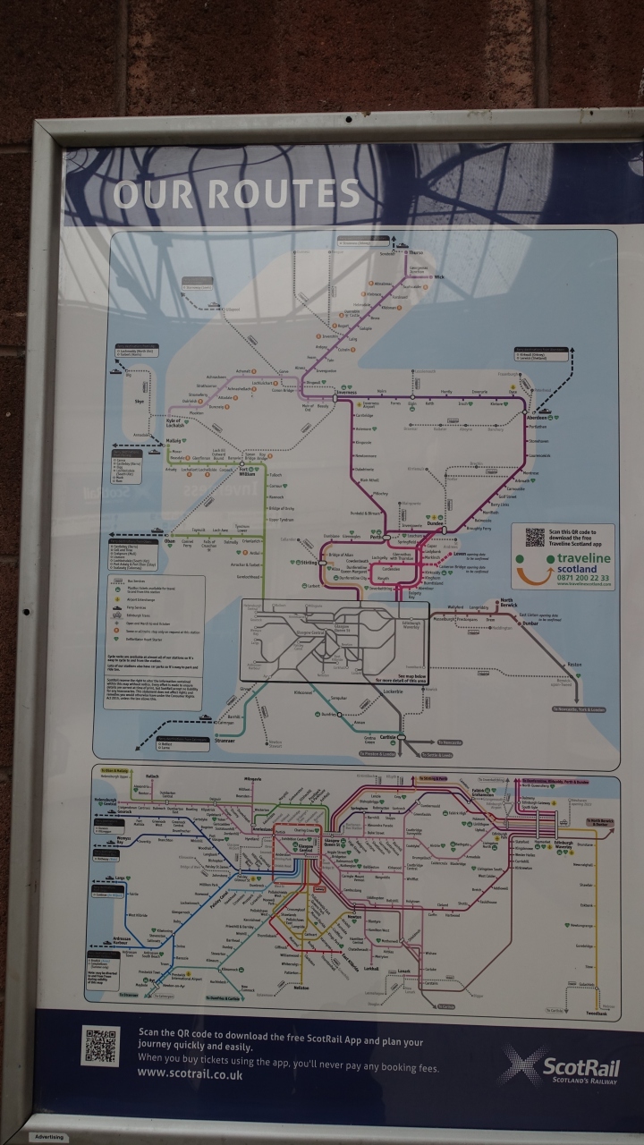 インバネスの陸の玄関口で、ここから四方に鉄道が伸びている。エジンバラに行くハイランド線、Wickに行くFar North線、Aberdeenに行く東ハイランド線、スカイ島対岸に行くKyle of Rochalsh線。幹線であるハイランド線はロンドンからの長距離列車も乗り入れている。便数はハイランド線と東ハイランド線で各々日に10往復程度、他の2線は4往復程度。ハイランドの移動には鉄道より近くのバスセンターでバスを利用する方が便利なようである。駅にはBike sharingが完備している。