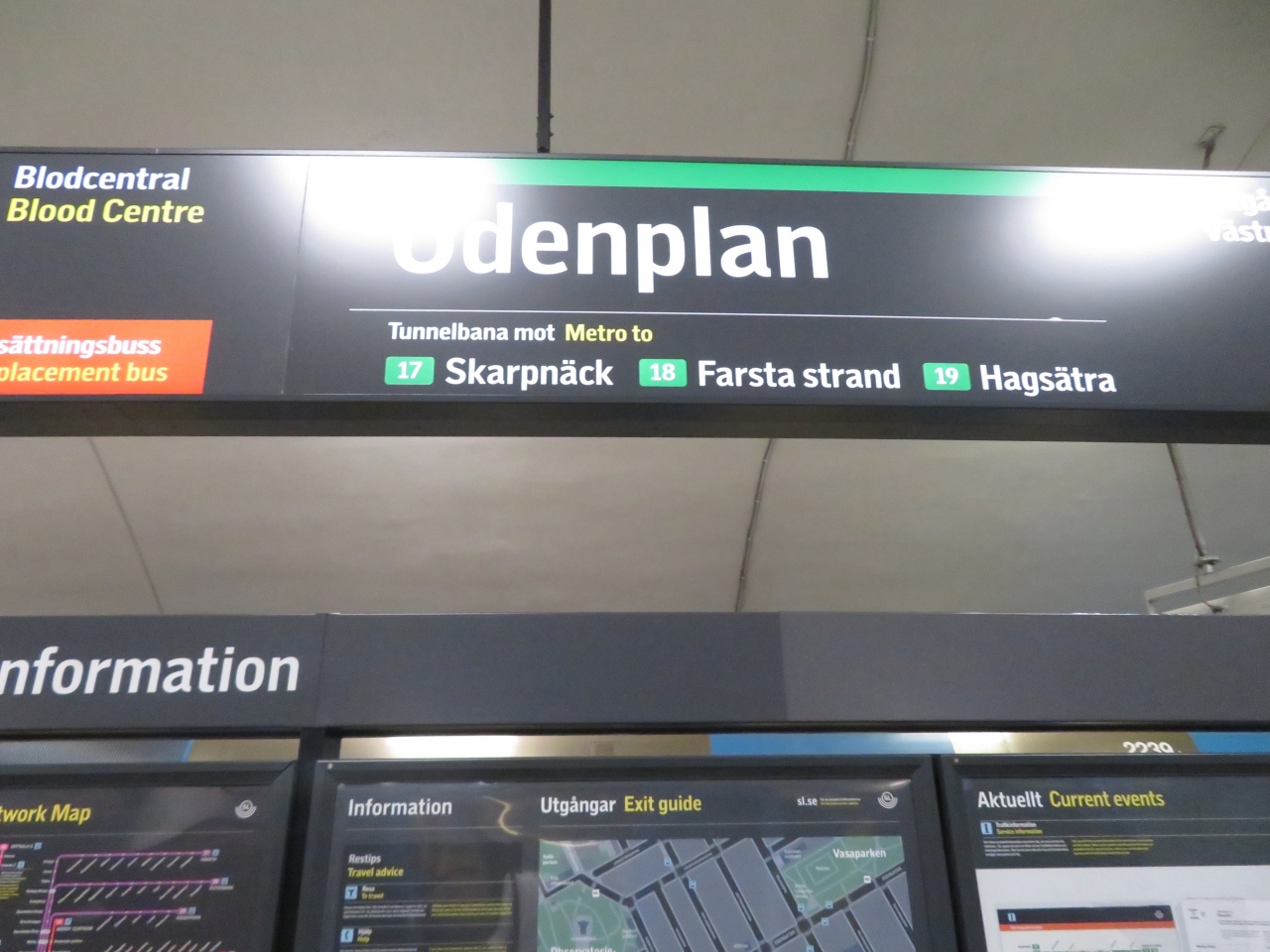 ドロットニングホルム宮殿からの帰りにバスに乗って、ブロンマプラン駅まで行き、地下鉄グリーンラインに乗換えてこの駅で降りました。この駅を降りて、すぐ西にあるグフタス・ヴァ―サ教会のさらに西にあるクリーニング屋のTvättomatenという店に出した洗濯物を取りに行く時に利用しました。中央駅の最寄りの地下鉄駅からは1km強の3つ目の駅なので、500円強の高い地下鉄運賃を考えると歩いた方がいいでしょう。