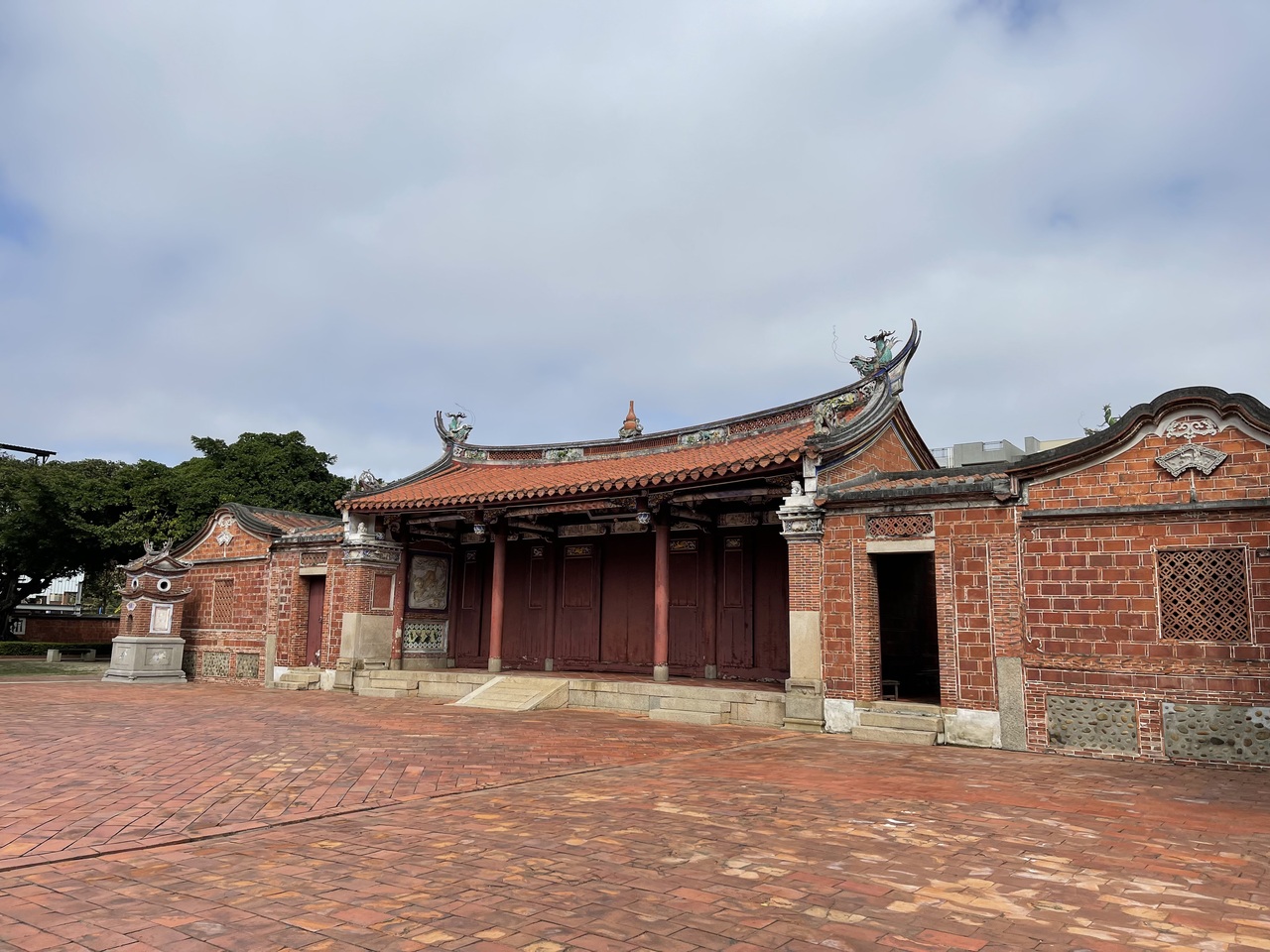 中華な建物や門が何個か固まっている建物群で、台湾らしい雰囲気の場所でした。赤煉瓦の通りも鹿港とマッチしていました。公園には、石のベンチやテーブルもあり、市民がくつろぎスペースとして共用できる場所でした。