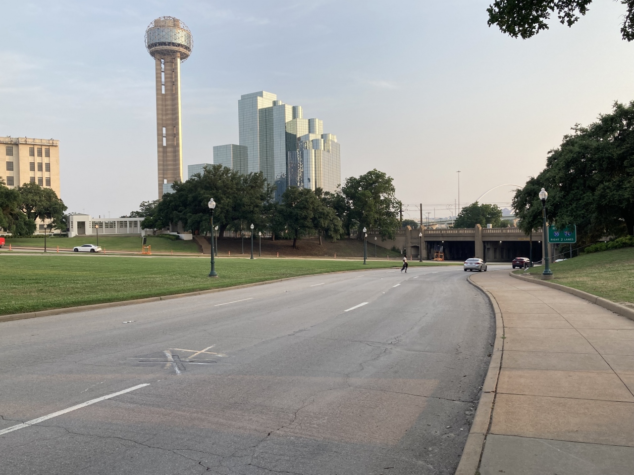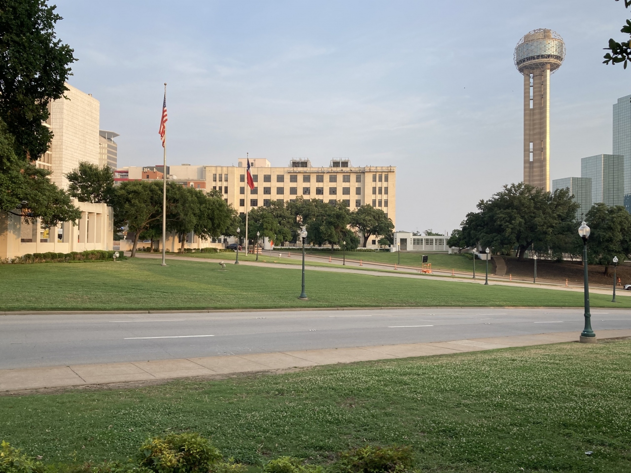 元アメリカ大統領ケネディがパレード中に暗殺された場所として有名です。発報場所とされる教科書倉庫ビルには、営業時間に間に合わず入れませんでしたが、2発の銃弾が道路(ディーリープラザ)に向かって着弾した場所にはバツ印があります。世界に衝撃を与えた有名な映像を思い出しました。