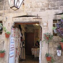 【ドブロブニク旧市街】の目抜き通りである【プラッツァ通り】から北側にある【ブジャ門】に向かって路地を上がると、東西に走る細い【プリェコ通り】に交差しました。この細い通り沿いを散策していると、古い石造りの建物を利用したおみやげ物があり、それが刺繡製品が有名とフォートラベルで紹介されていた【バチャン】でした。店内には、白地に赤の刺繍が施されたテーブルクロスや洋服などが壁も利用して陳列してありました。2人も入ると溢れてしまう程に小さな店内ですが、クロアチアらしいお土産を購入できるお店でした。
