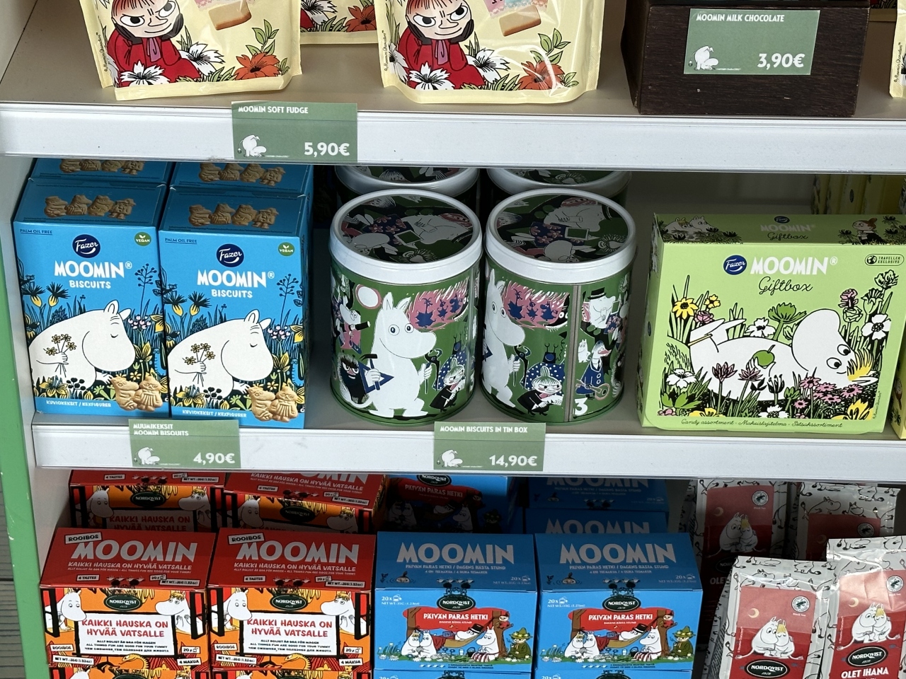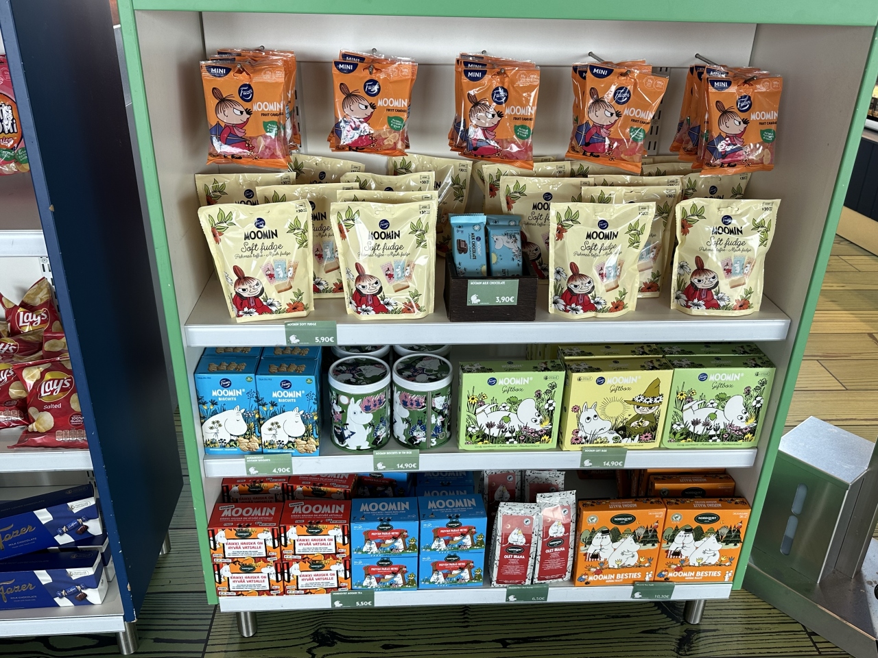 ムーミンがパッケージに描かれたFazer社のチョコやクッキーなども売られてましたが、お値段は市内のショップやスーパーより高めでした。