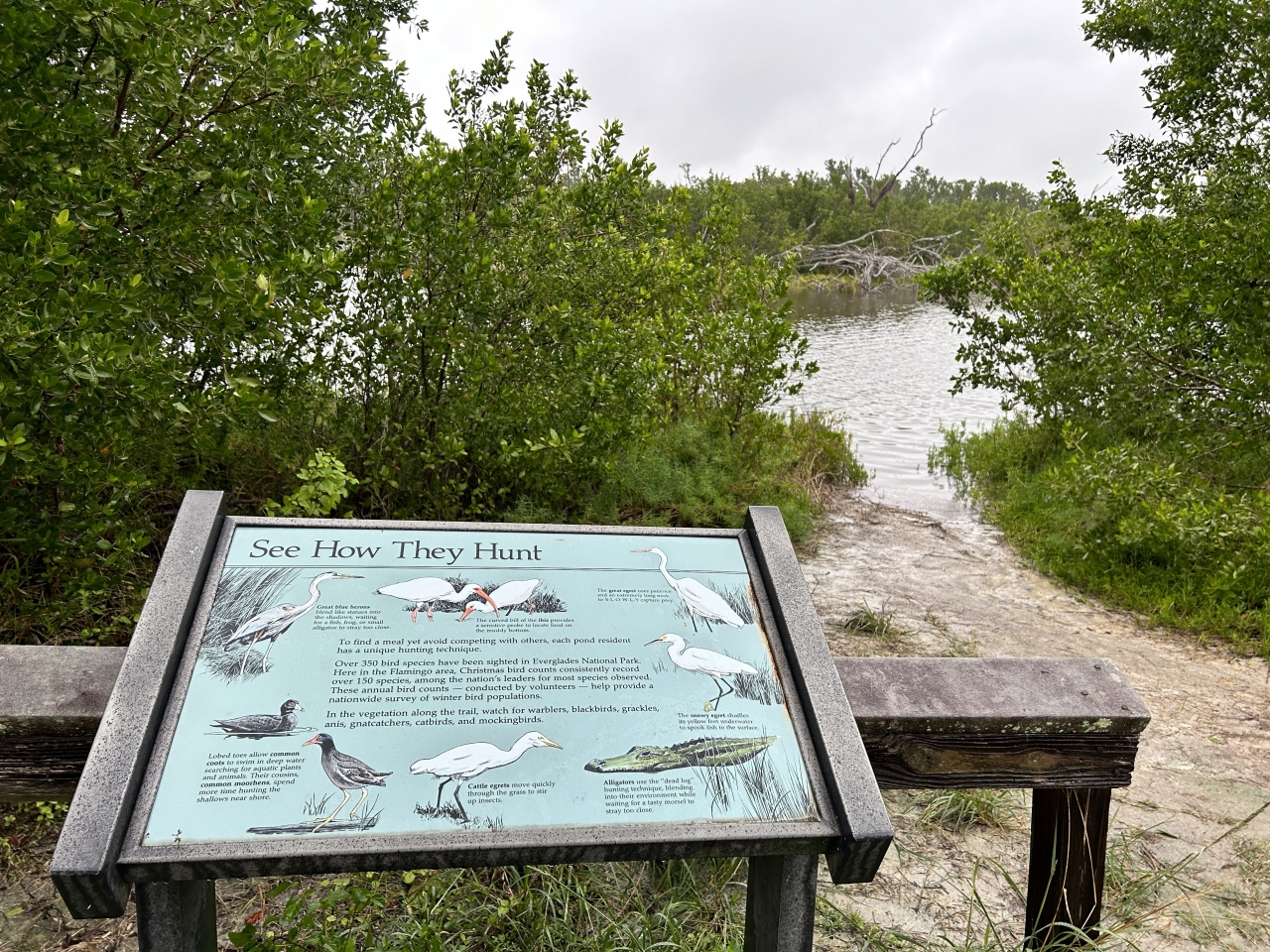 フラミンゴ・ビジター・センターから西へ1マイルほどの場所にある池です。エコ・ポンドを一周する0.5マイルのショート・トレイルがありましたので歩いてみました。水場があればワニがいるかな…と思って一周してみましたが残念ながらワニには出会えませんでした。ちょっとした散策には良いトレイルです。