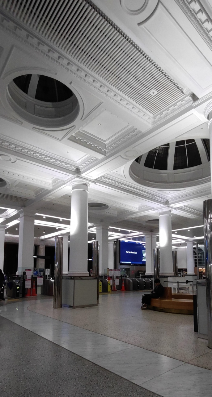 オークランドの「クイーン通り」に面してありました。重厚な建物で、内側の天井部分も印象的なデザインです。自動改札口がありましたが、実際の利用者の多くは、こちらの裏側の入口を利用するようです。すぐ近くには「フェリービルディング」など、歴史を感じさせる建物があり、趣を感じる場所でした。