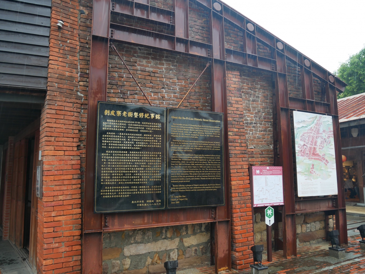 龍山寺駅近くにあるリノベスポット。赤レンガの昔ながらの街並みが印象的です。中はお店ではなく、小さな展示スポットになっており、街の歴史の展示や学生などが展示会を開いている部屋がありました。
