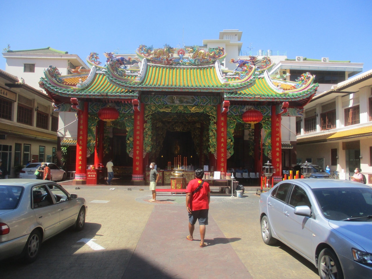 クアンイム神社と言う名前になります。ティンファー財団という団体が運営しています。神社だけでなく、医療施設が併設されていました。タイ・バンコクの寺院は金色系の建築物が多いのですが、真っ赤な建物で中国の寺院にいるような感じでした。