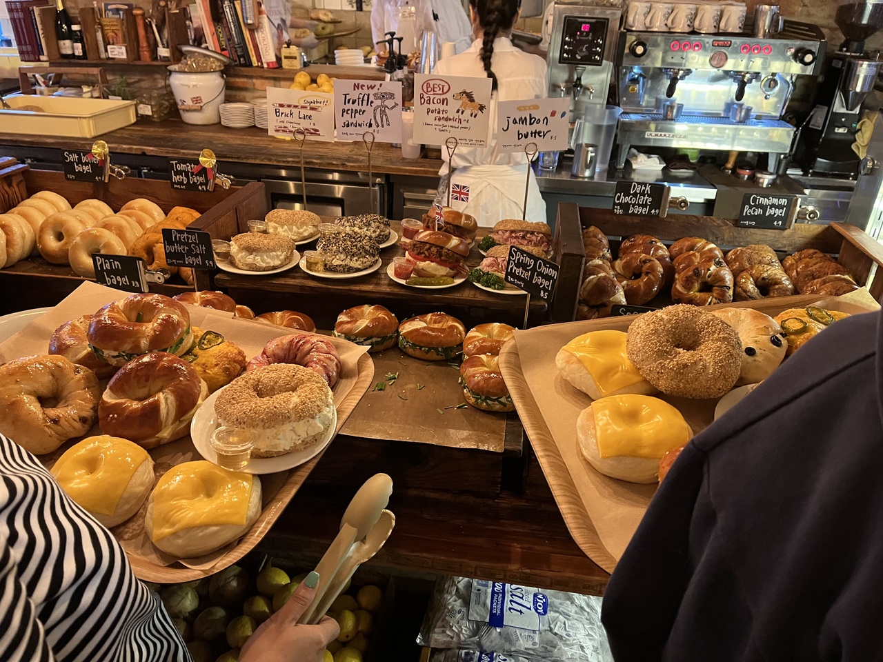 ベーグルはずっしりと重く日本のより少し大きいサイズかと思います。帰国日に来たのでジップロックに入れて持ち帰り冷凍しましたが、ふっくらカツもっちと感とやや甘めな生地で美味しかったです。
