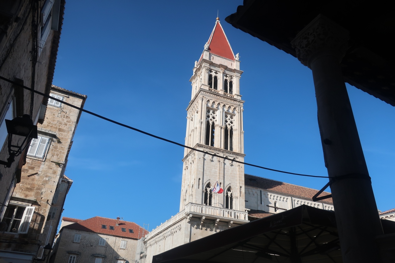 トロギールを代表する建築物が「聖ロヴロ大聖堂」。観光の中心地となるイヴァン・パヴァオ・ドゥルギ広場に面していて、高さ47メートルの鐘楼はどこからも目印となる。13世紀に建築が始まり、完成したのは17世紀。そのため様々な建築様式の見られる大聖堂で、装飾に包まれた柱など外観だけでも見る価値がある。入場料を払えば、鐘楼に登ってトロギールの街並みを見ることができる。