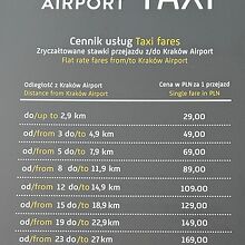 クラクフ・バリツェ国際空港から市内へタクシー利用の際は、乗り場に距離に応じた料金が表示された立て看板がありますので、あらかじめ目的地への距離を把握しておくと参考になると思います。