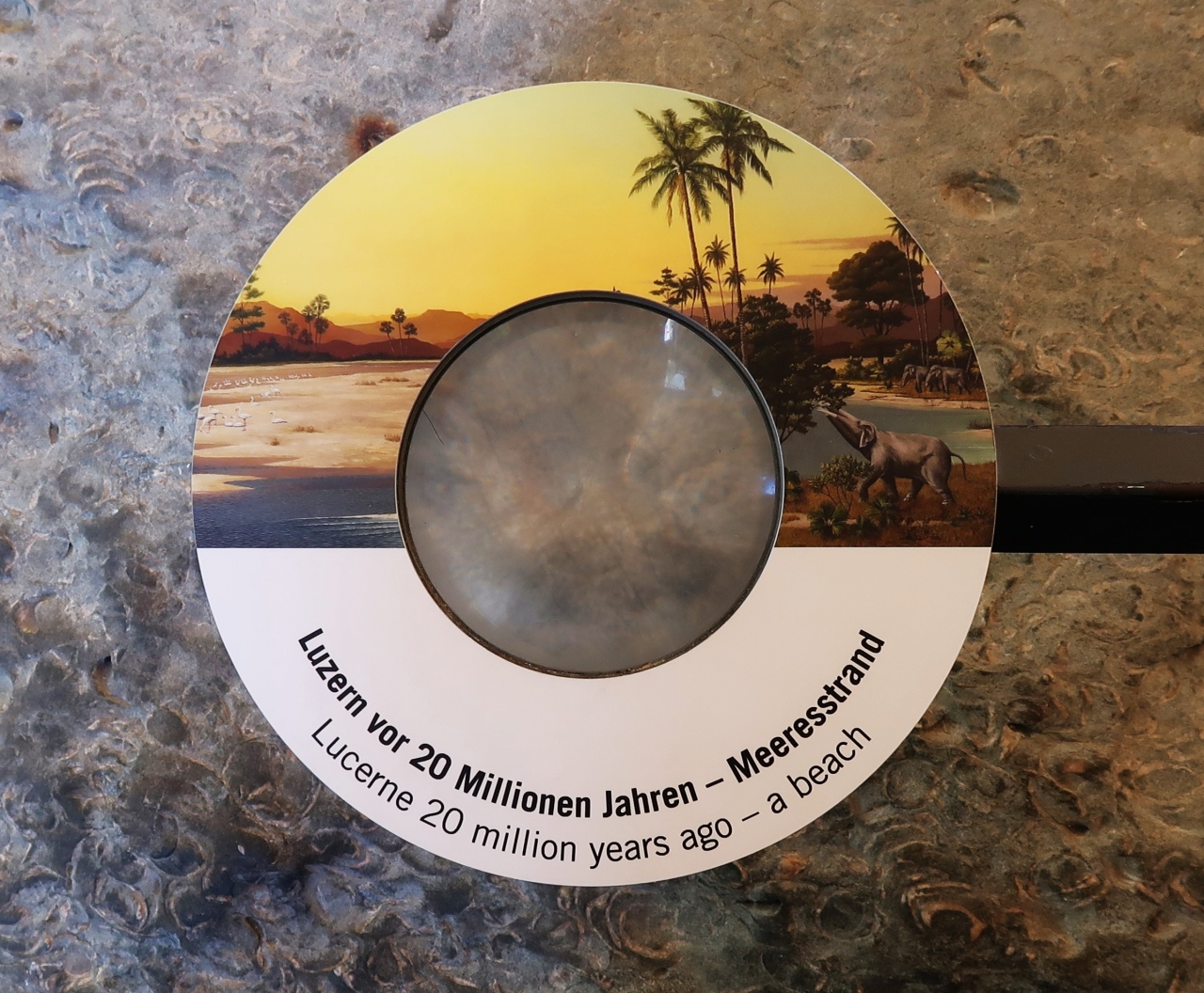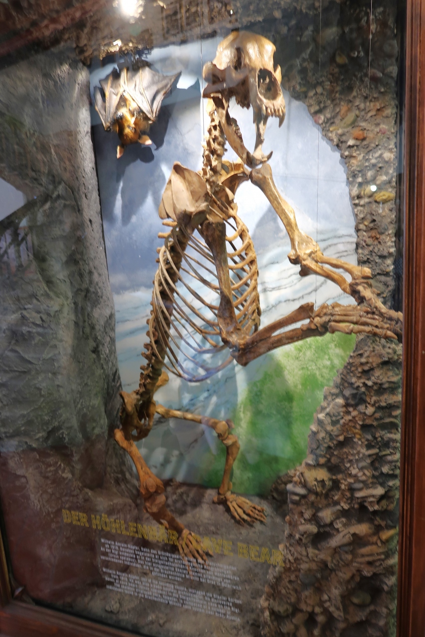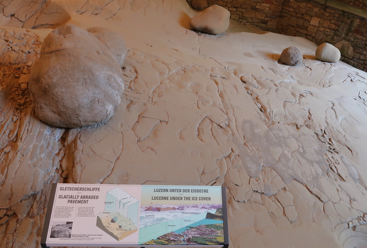 2万年前のルツェルンがロイス氷河の下にあった時代を再現する施設です。氷河が溶けた渦巻く水流で岩盤にポットホールと呼ばれる大きな穴ができ、穴の中でくるくる回って丸くなった石などが見られます。また驚くことに2万年前のルツェルンには、椰子の木が繁るビーチもあったそうです。ミュージアムには、人類の狩猟により絶滅した洞穴熊の骨、アルプス山脈で採集してきた水晶などが展示されていました。