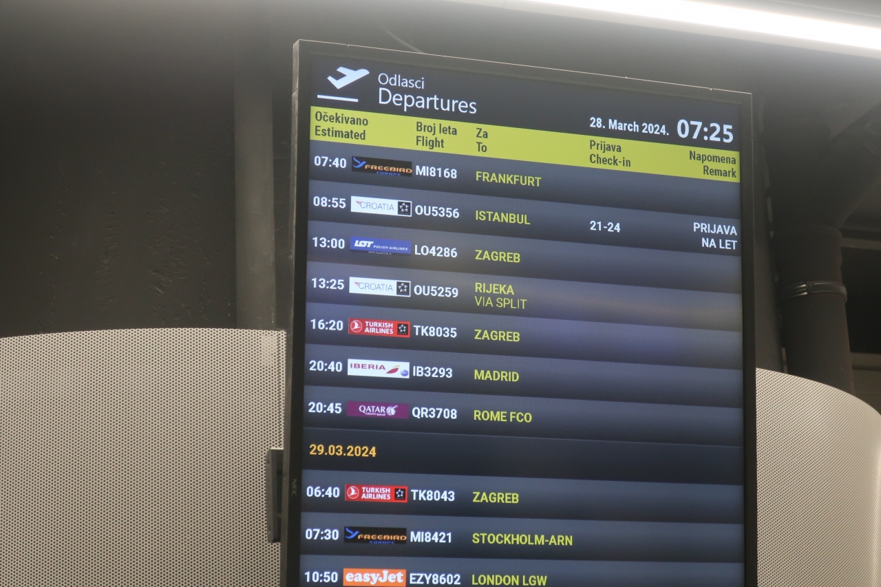ドブロブニク市内から海岸線を南方向に30分くらい走ったところに空港があります。リゾート地なのでヨーロッパ各地と季節便が多く発着するので、季節によって便数は大きく変動します。オフシーズンだったのでガランとした感じでしたが、夏になると賑わう空港のようです。