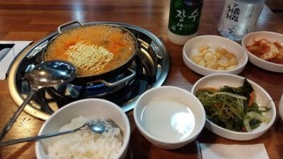 キムサムボでキムチチゲ鍋。ご飯も美味しくないじゃん(笑)