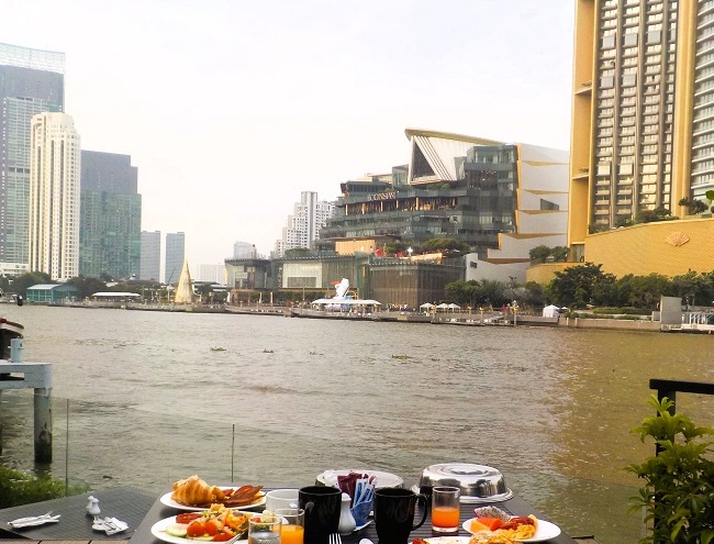 バンコクを流れるチャオプラヤー川。ボートに乗って川沿いの寺院をめぐるのもバンコクらしくておすすめです。チャオプラヤー川沿いのホテルに宿泊して朝食を楽しみました。大きな枝が流れてくるのを見ながらの食事。早朝なら程よい風が心地よく、涼しくて快適なのでおすすめです。