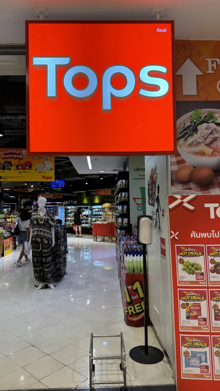 タイ大手の小売業のセントラル・グループのスーパーマーケットのトップス。バンコク市内に複数のお店がありますが、お店によって客層も品物もまったくちがいます。デリバリーサービスもあってホテルでも水や生鮮食品を気軽に注文出来るのは嬉しい限り。